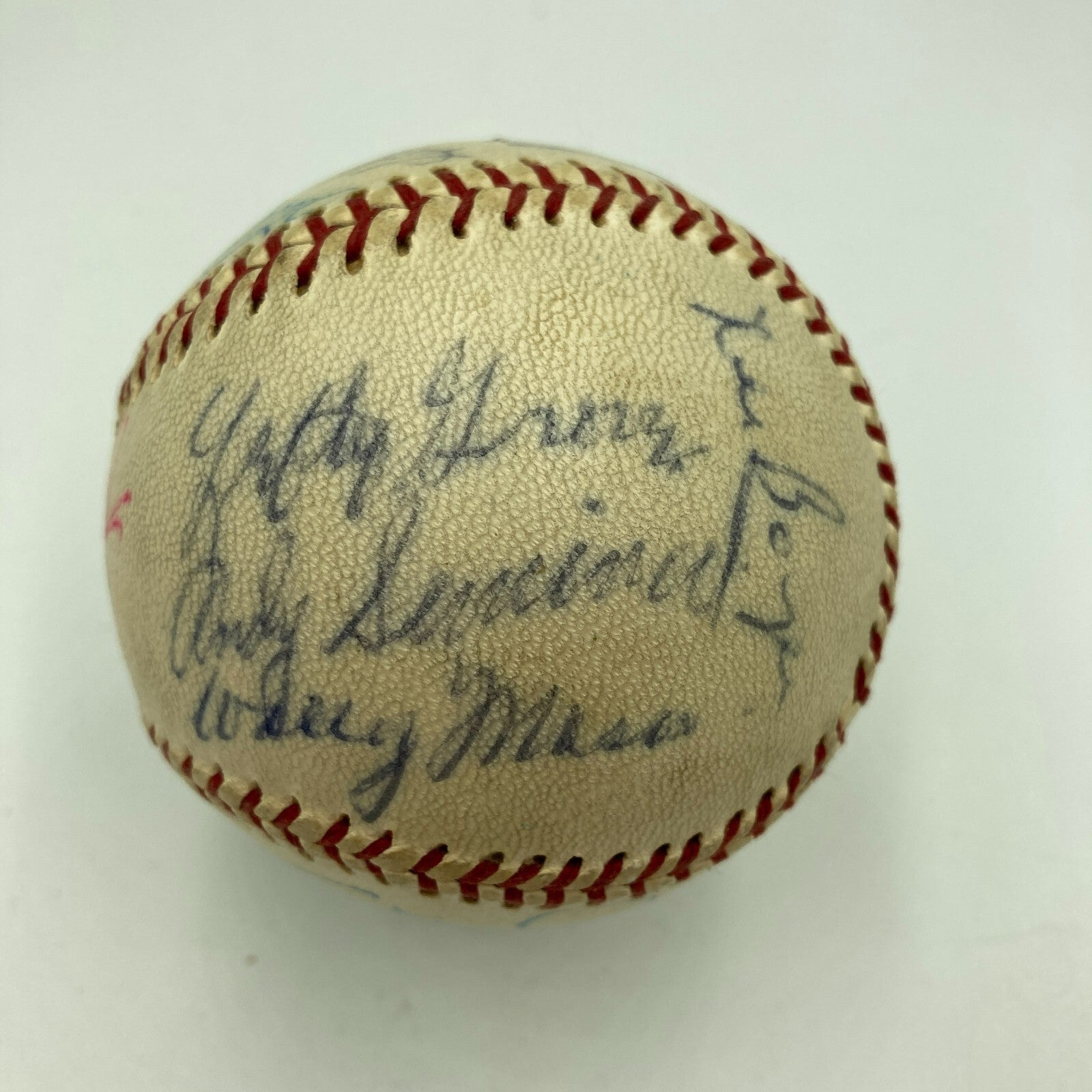 Willie Mays, Joe Medwick, Nellie Fox, Lefty Grove, Bob Feller, Stan Musial  1960's HOF Legend Multi Signed Baseball. 21 signatures.