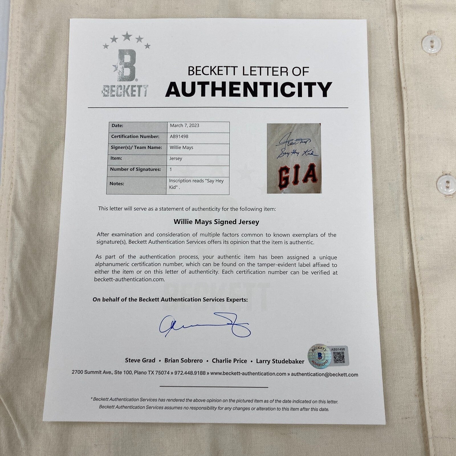Click or scroll to zoom Tap or pinch to zoom Click or scroll to zoom Tap or pinch to zoom Click or scroll to zoom Tap or pinch to zoom Click or scroll to zoom Tap or pinch to zoom Click or scroll to zoom Tap or pinch to zoom Click or scroll to zoom Tap or pinch to zoom Click or scroll to zoom Tap or pinch to zoom Click or scroll to zoom Tap or pinch to zoom Click or scroll to zoom Tap or pinch to zoom Willie Mays "Say Hey Kid" Signed Inscribed Authentic 1951 Giants Jersey Beckett $9,995.00 1 2 3 4 5 6 7 8 9 10+ Quantity Quantity Add to cart This item is a recurring or deferred purchase. By continuing, I agree to the cancellation policy and authorize you to charge my payment method at the prices, frequency and dates listed on this page until my order is fulfilled or I cancel, if permitted. The Finest Willie Mays "Say Hey Kid" Signed Inscribed Authentic 1951 Mitchell & Ness New York Giants Jersey. Bold huge signature and inscription.Comes with full letter Beckett COA. T#1