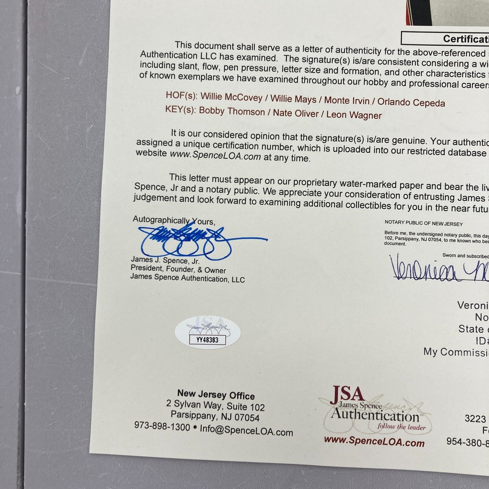 $649.00 1958 San Francisco Giants Team Signed NL Baseball Willie Mays JSA COA 1958 San Francisco Giants Team Signed Official National League Baseball. 31 signatures with:Willie Mays, Orlando Cepeda, Russ Hodges, Marv McCormi... View full details