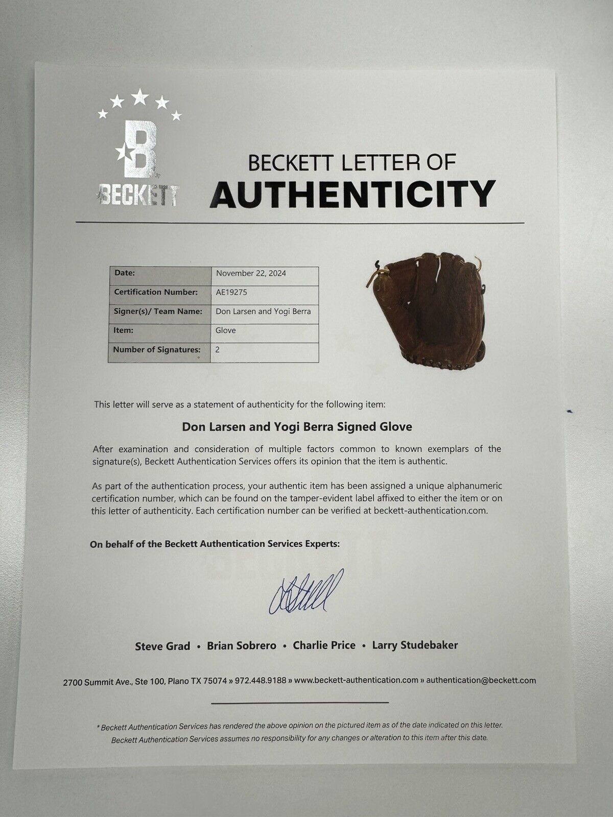 Rare Yogi Berra & Don Larsen Signed 1950's Spalding Baseball Glove With Beckett COA