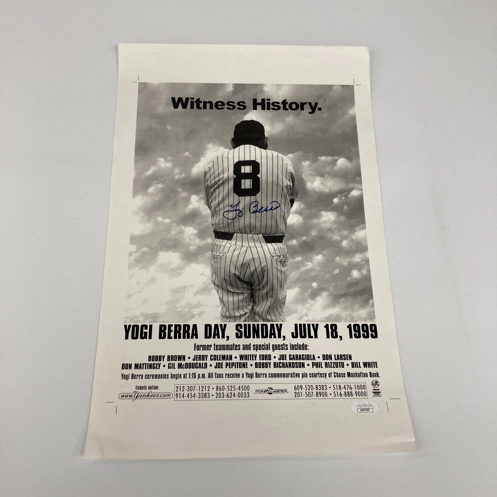 Rare Yogi Berra Signed 11x17 1999 Yogi Berra Day Poster Photo JSA Sticker