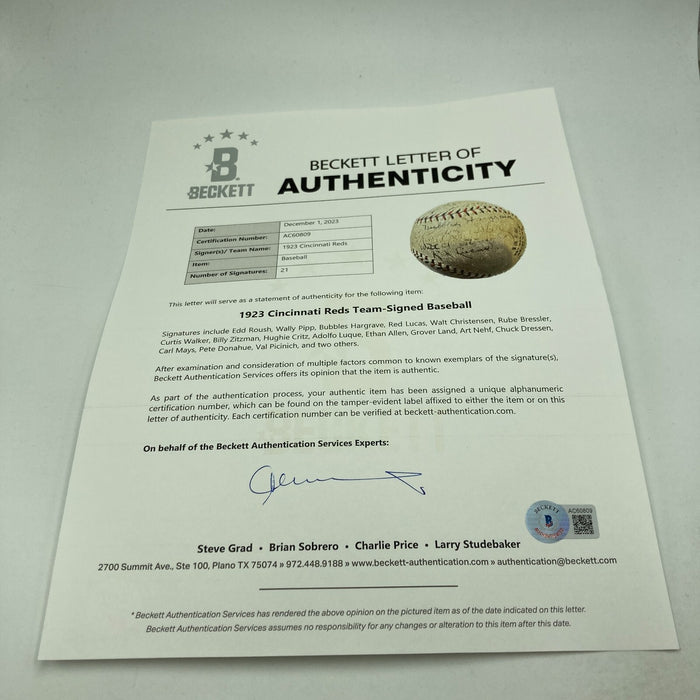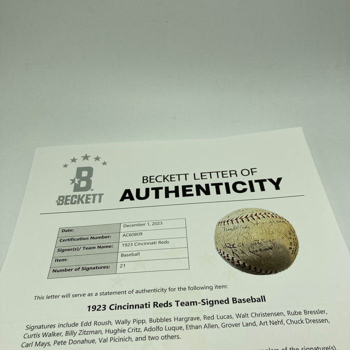A 1923 Cincinnati Reds Team Signed Autograph Baseball (Beckett Authentication Services Letter of Authenticity)