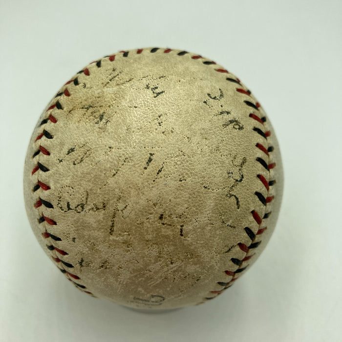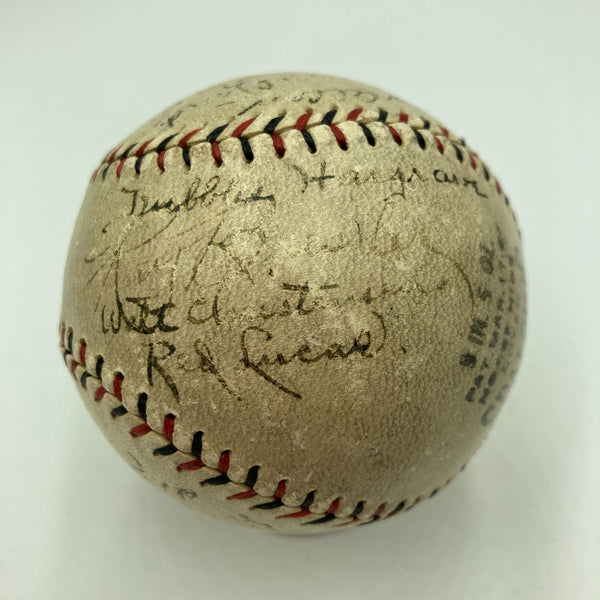 Includes Edd Roush. Also signed by Wally Pipp, Bubbles Hargrave, Red Lucas, Walt Christensen, Rube Bressler, Curtis, Walker, Billy Zitzman, Hughie Critz, Adolfo Luque, Ethan Allen, Grover Land, Art Nehf, Chuck Dressen, Carl Mays, Pete Donahue, Val Picinich plus two others.