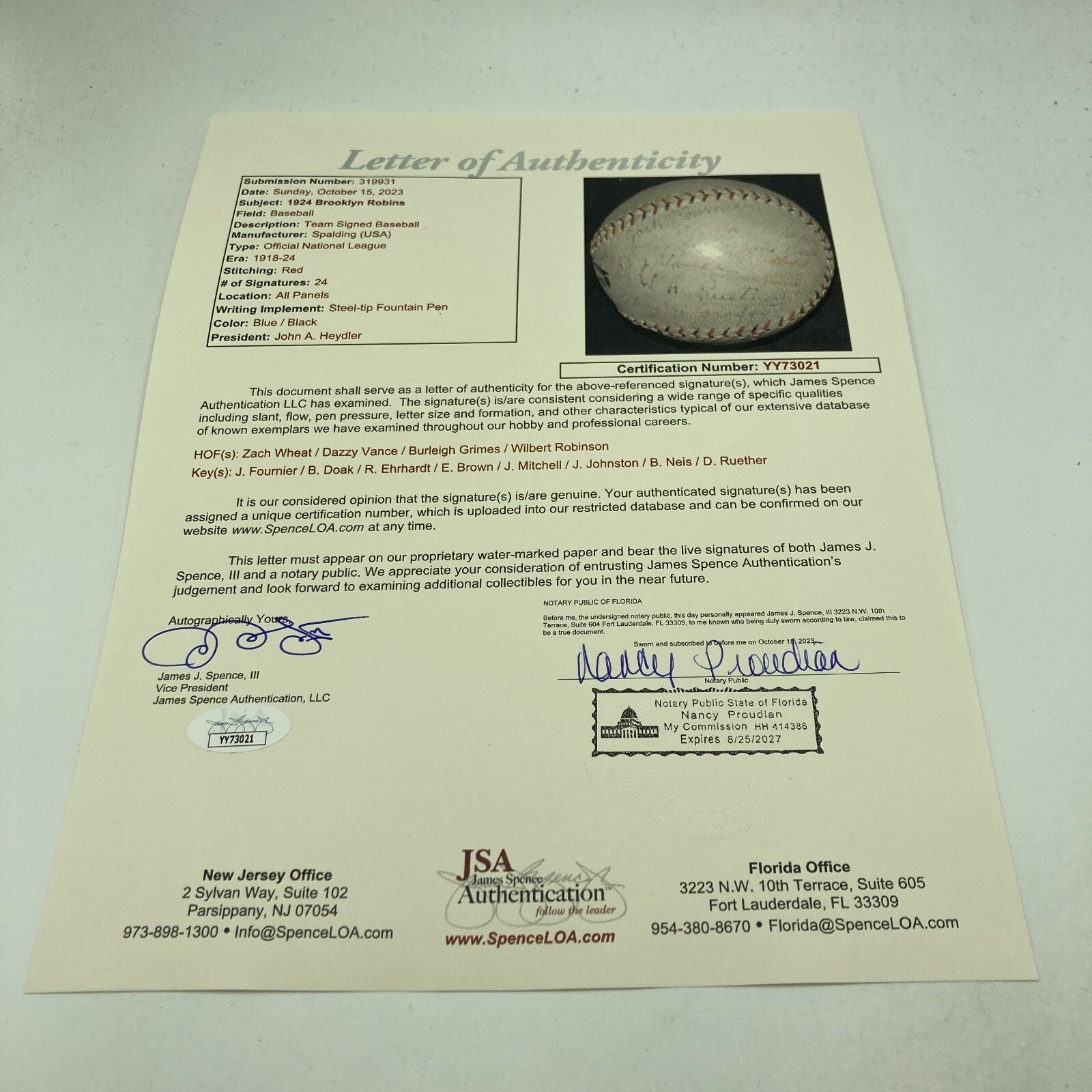 1924 Brooklyn Dodgers (Robins) Team Signed Baseball Wilbert Robinson JSA COA