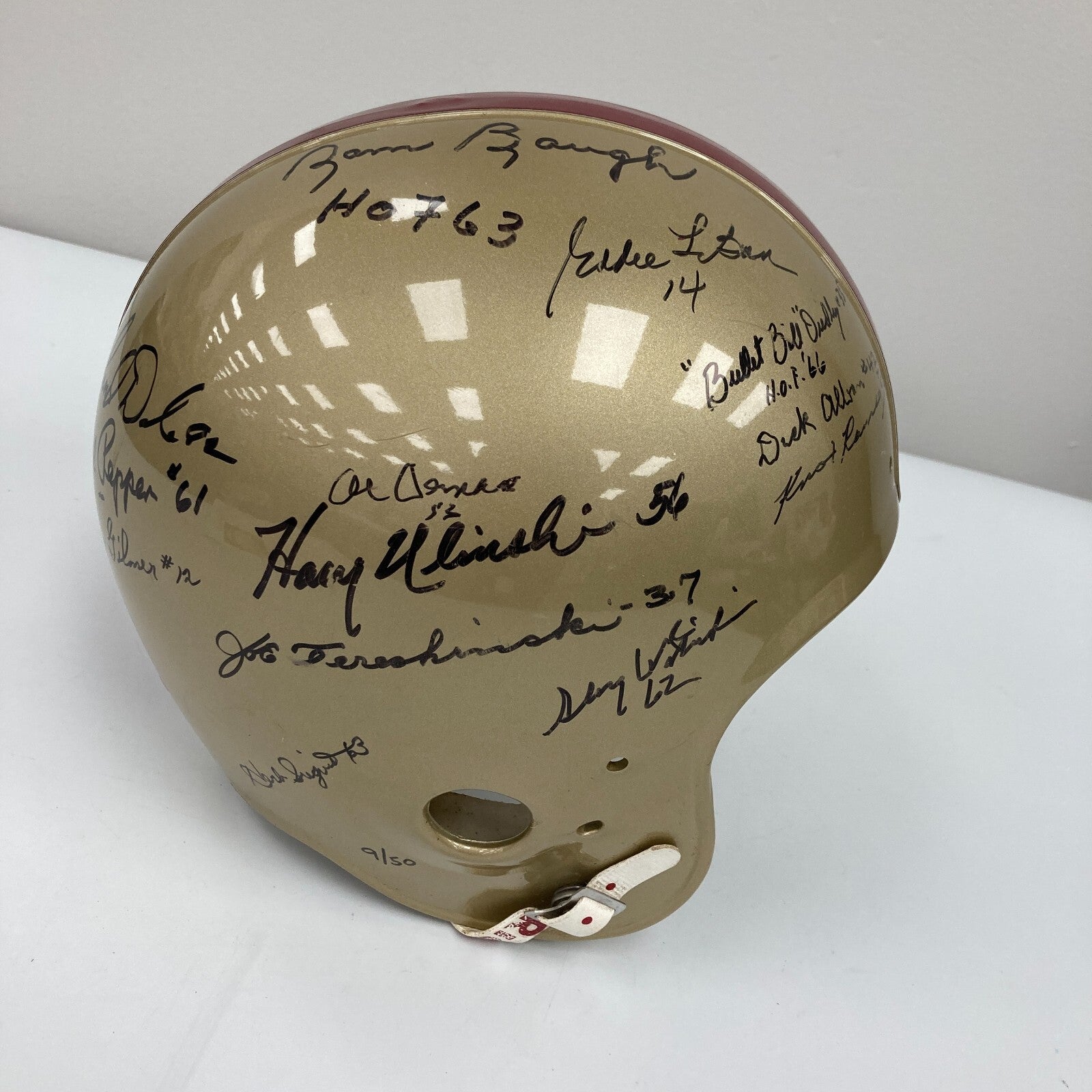 Offered is a facemask-less replica helmet signed by members of the 1952 Washington Redskins. Among the solid black Sharpie signatures are Sammy Baugh, Bill Dudley, Joe Tereshinski, Harry Ulinski, Gene Pepper and more.