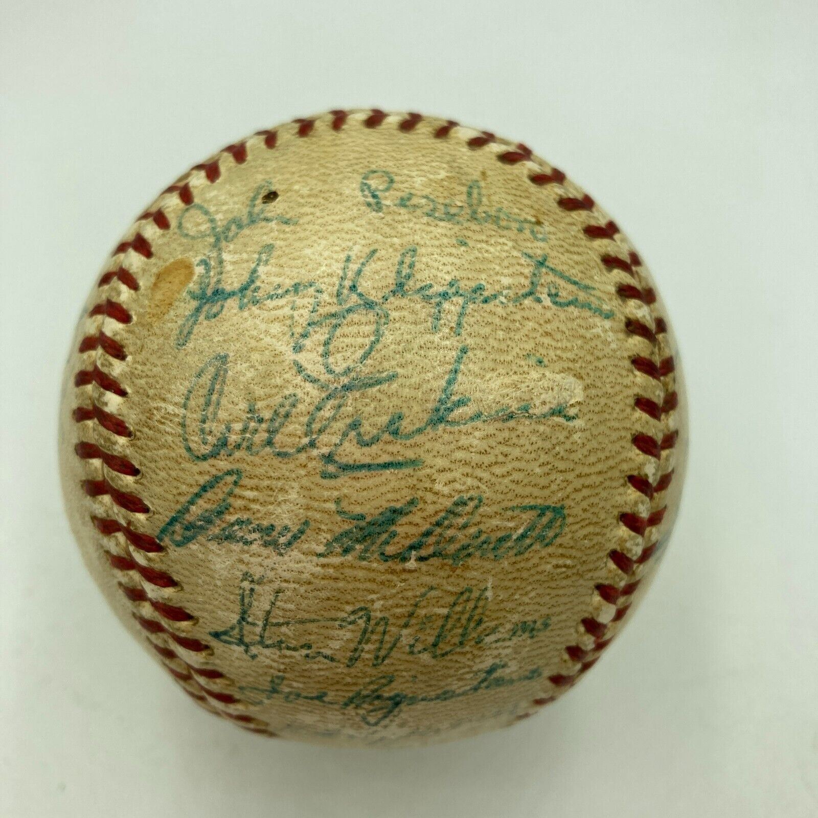 1958 Los Angeles Dodgers Team Signed Baseball. Sandy Koufax leads the charge on this Official National League (Giles) orb signed by the 1958 Los Angeles Dodgers. 22 signatures with Walt Alston, Pee Wee Reese, John Roseboro, Duke Snider, Don Drysdale, Carl Erskine, Johnny Podres, Carl Furillo, Don Bessent and 12 additional.