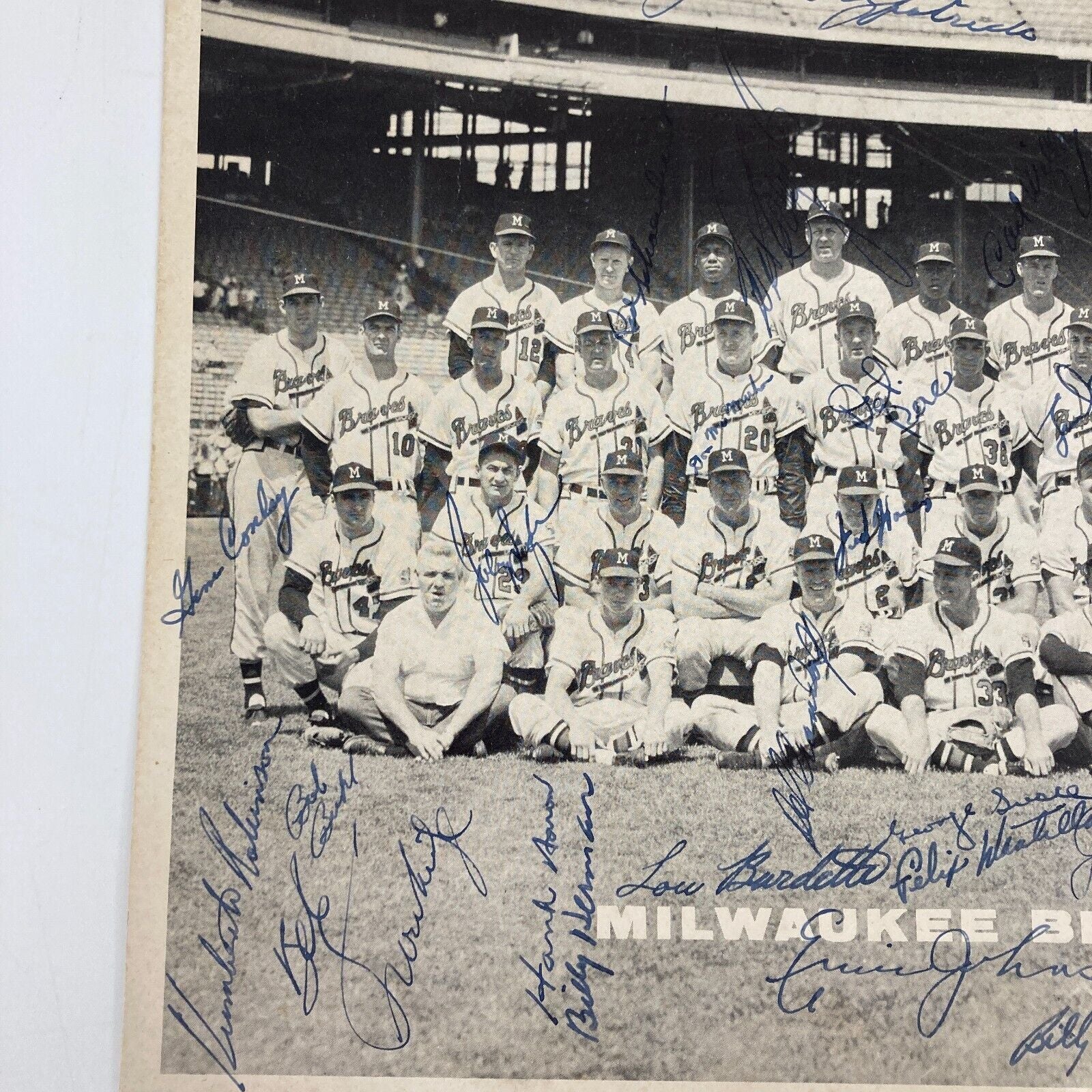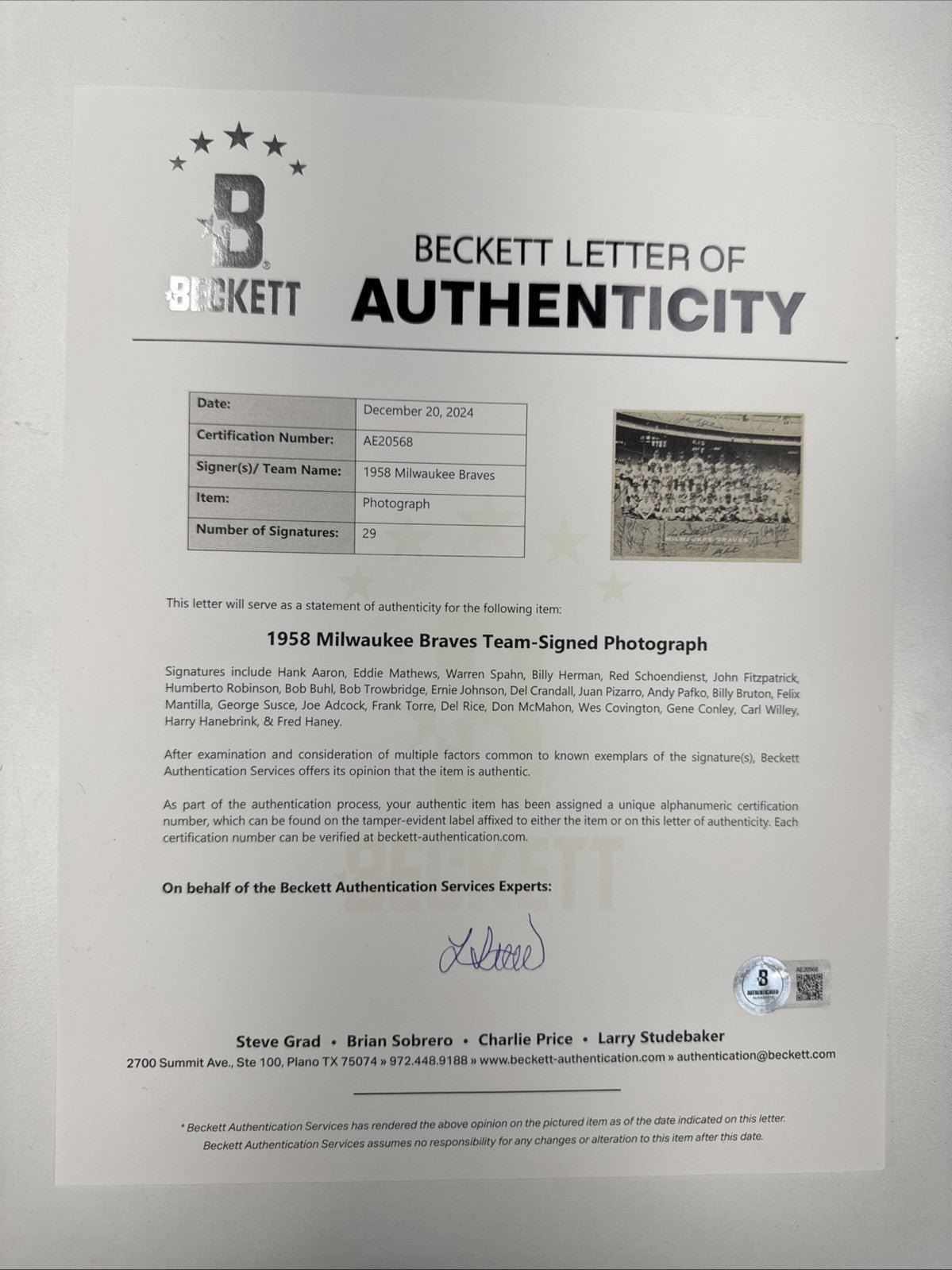 1958 Milwaukee Braves NL Champs Team Signed Photo Hank Aaron Beckett COA