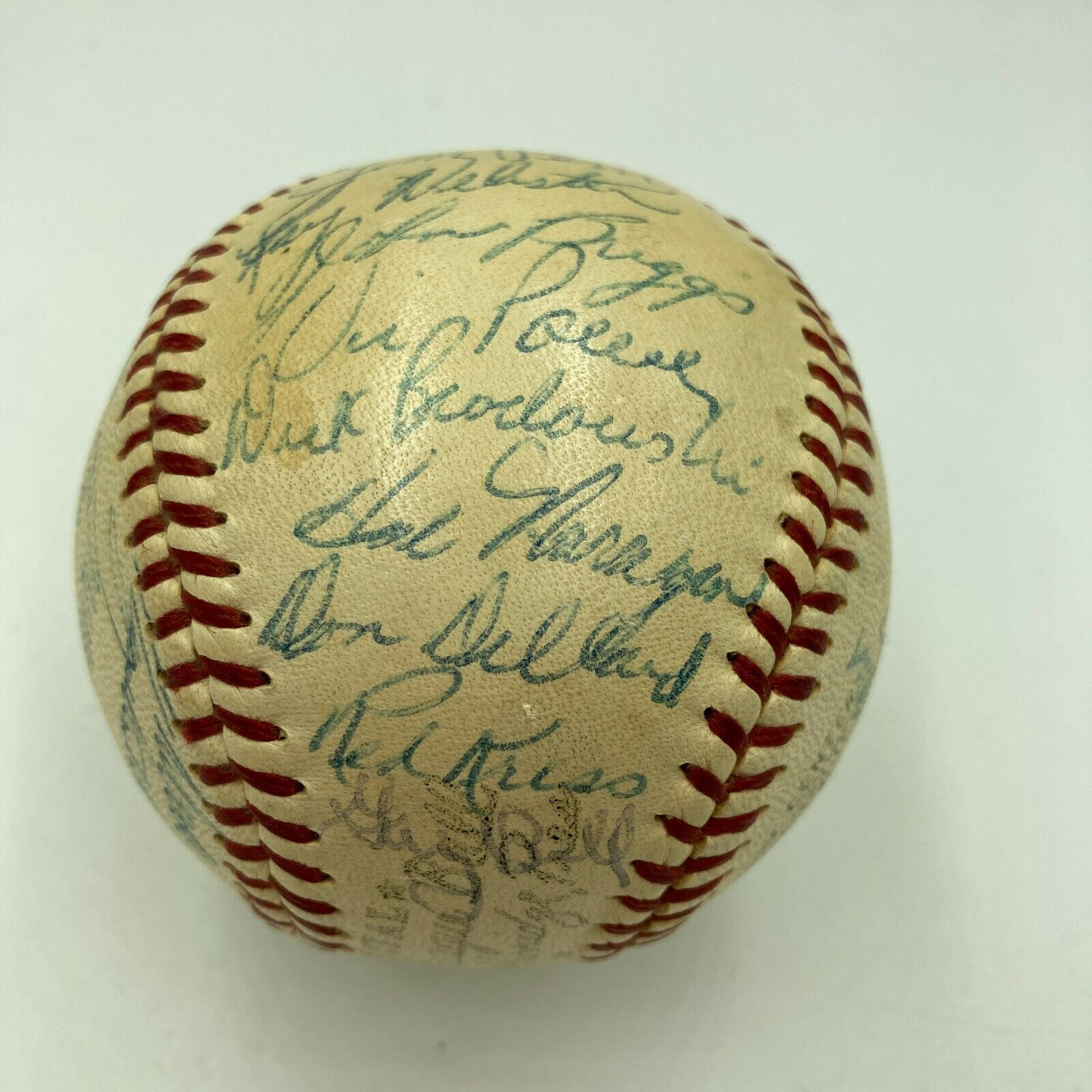 Sold out Jackie Robinson & Roy Campanella 1953 Brooklyn Dodgers Team Signed Baseball BAS Beautiful Official National League ball (Giles) signed in blue ink by the following nineteen members of the 1953 National League champion Brooklyn... View full details