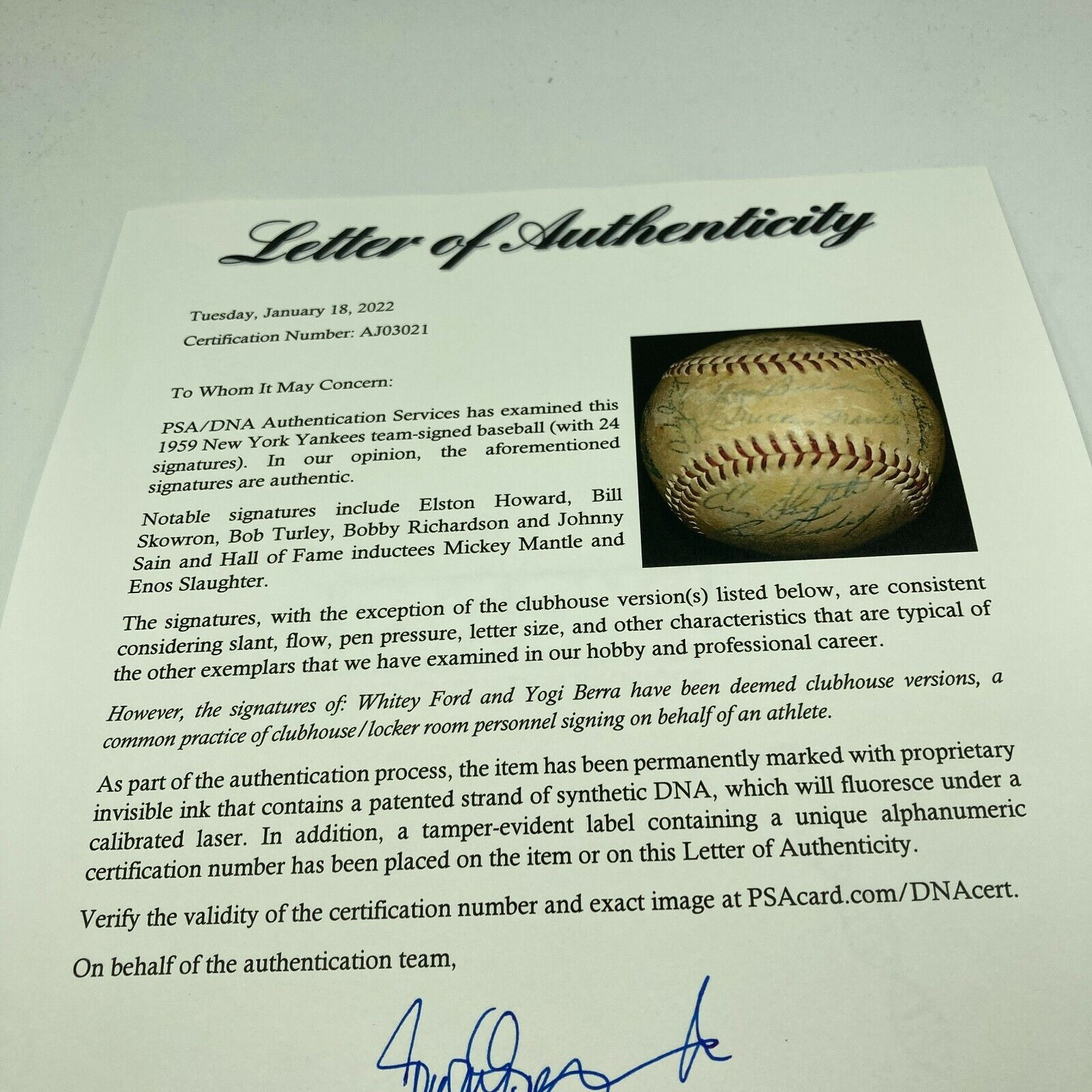 1959 New York Yankees Team Signed Baseball Mickey Mantle PSA DNA COA