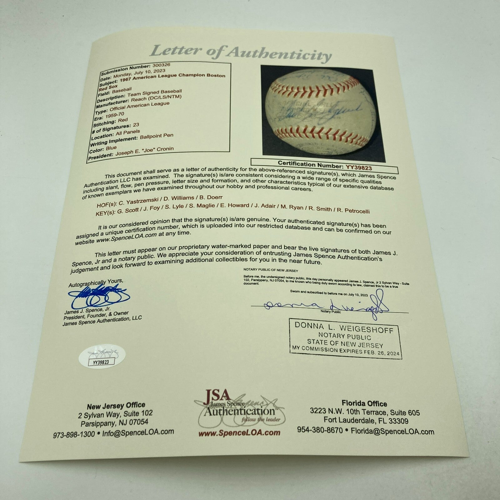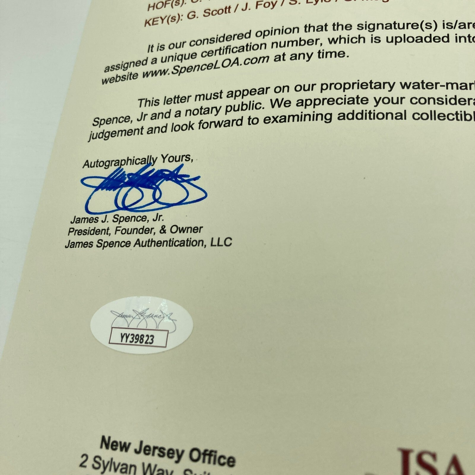 Comes With Full Letter JSA COA.