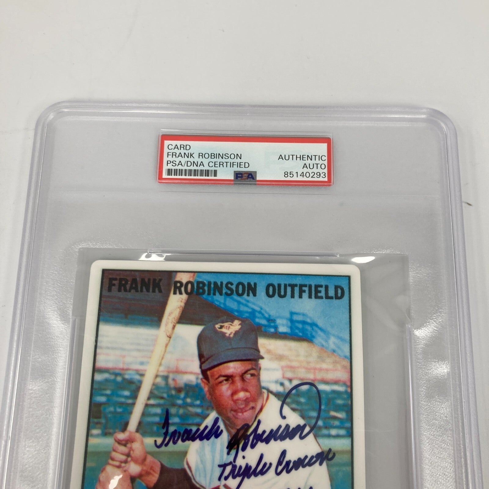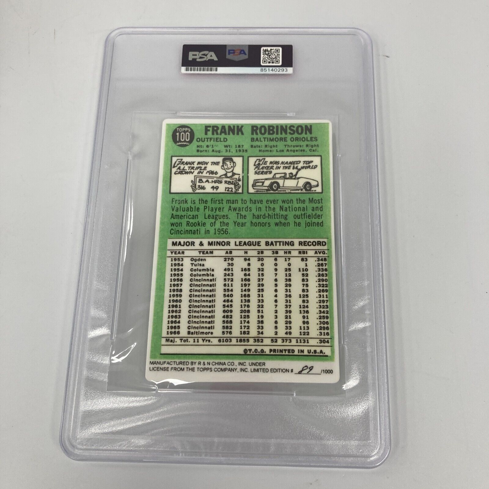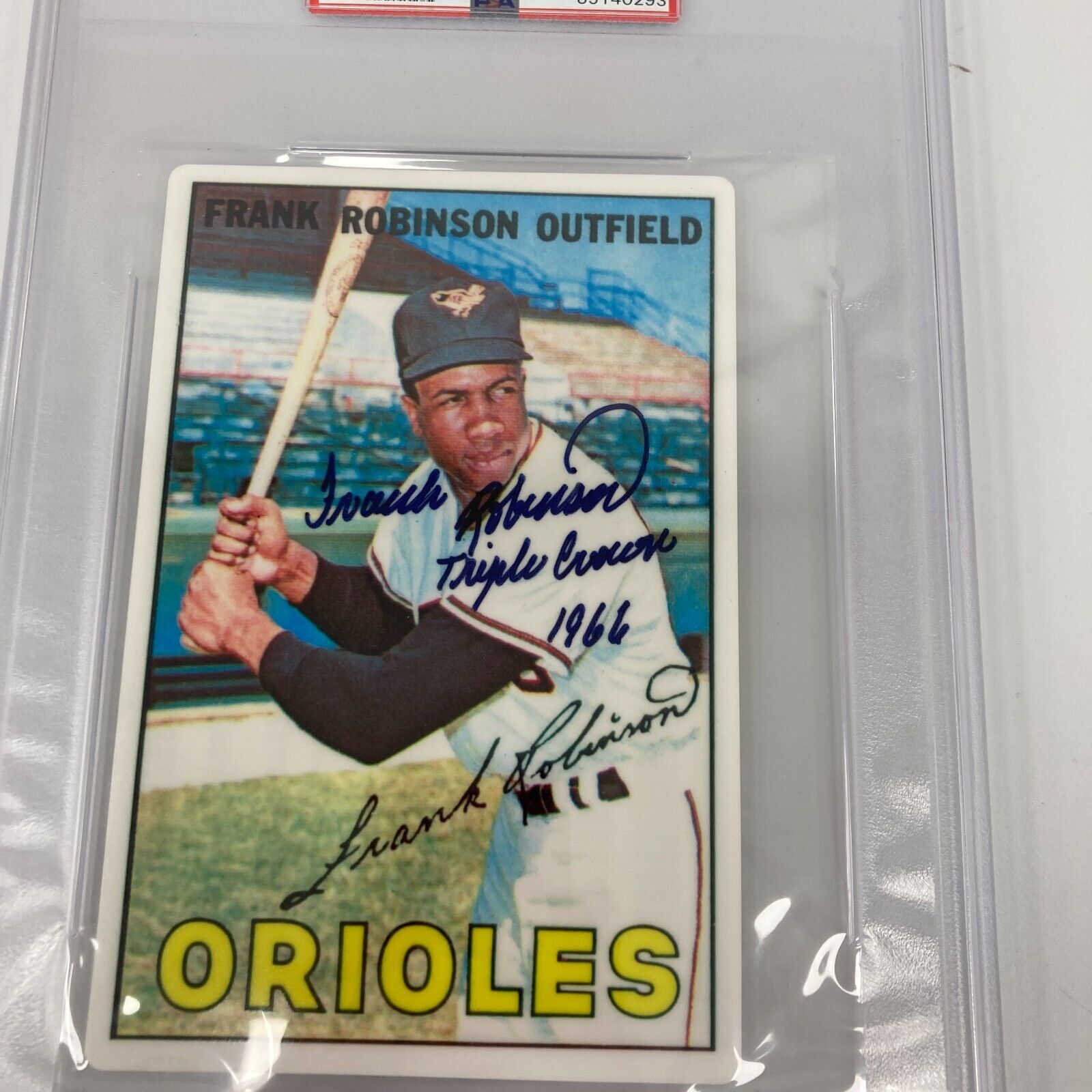 1967 Topps Frank Robinson Triple Crown Signed Large Porcelain Card PSA DNA Encapsulated and Authenticated