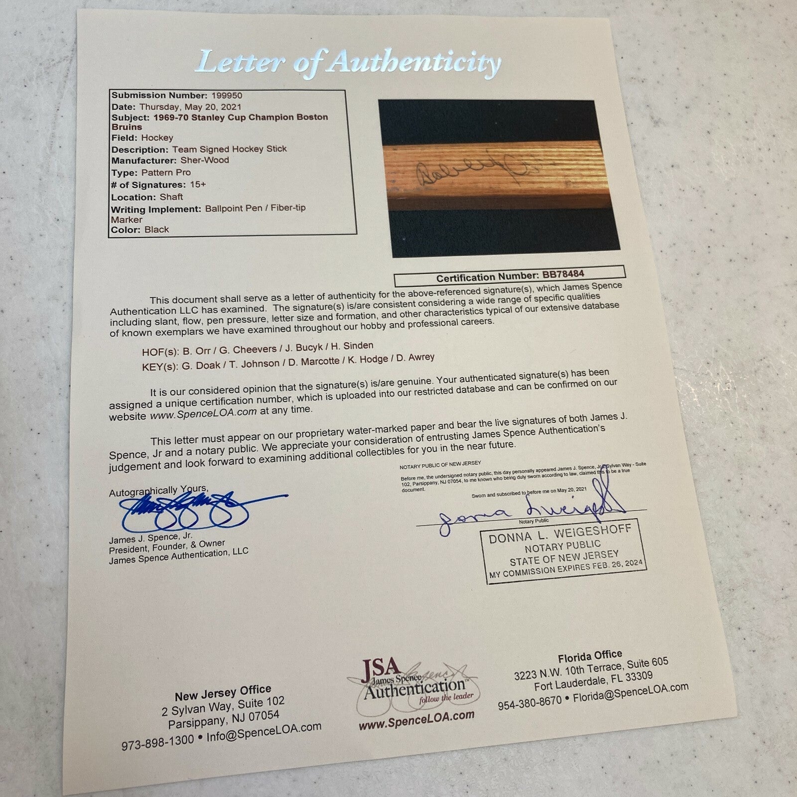 1969-70 Boston Bruins Stanley Cups Champs Team Signed Game Used Hockey Stick JSA
