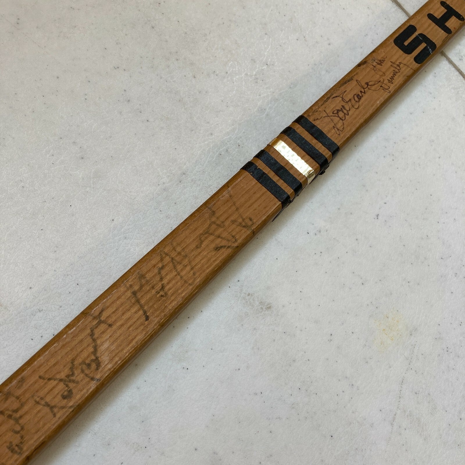RARE 1969-1970 Boston Bruins Stanley Cups Champs Team Signed Jim Lorentz Game Used Hockey Stick. 20+ Signatures with Bobby Orr, Cheevers, Bucyk, Sinden and many others.