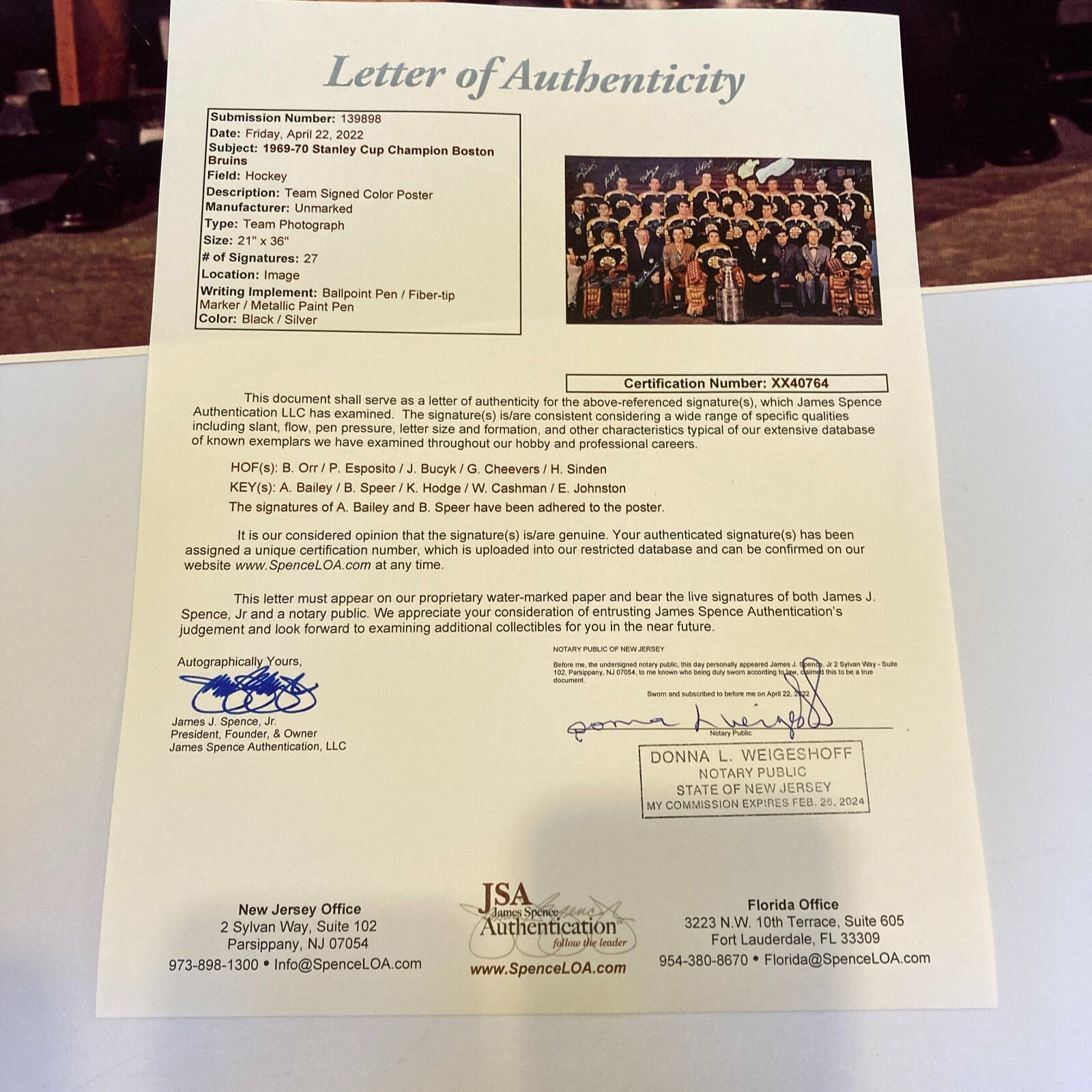 1969-70 Stanley Cup Champion Boston Bruins Team Signed Large 21x36 Photo JSA COA