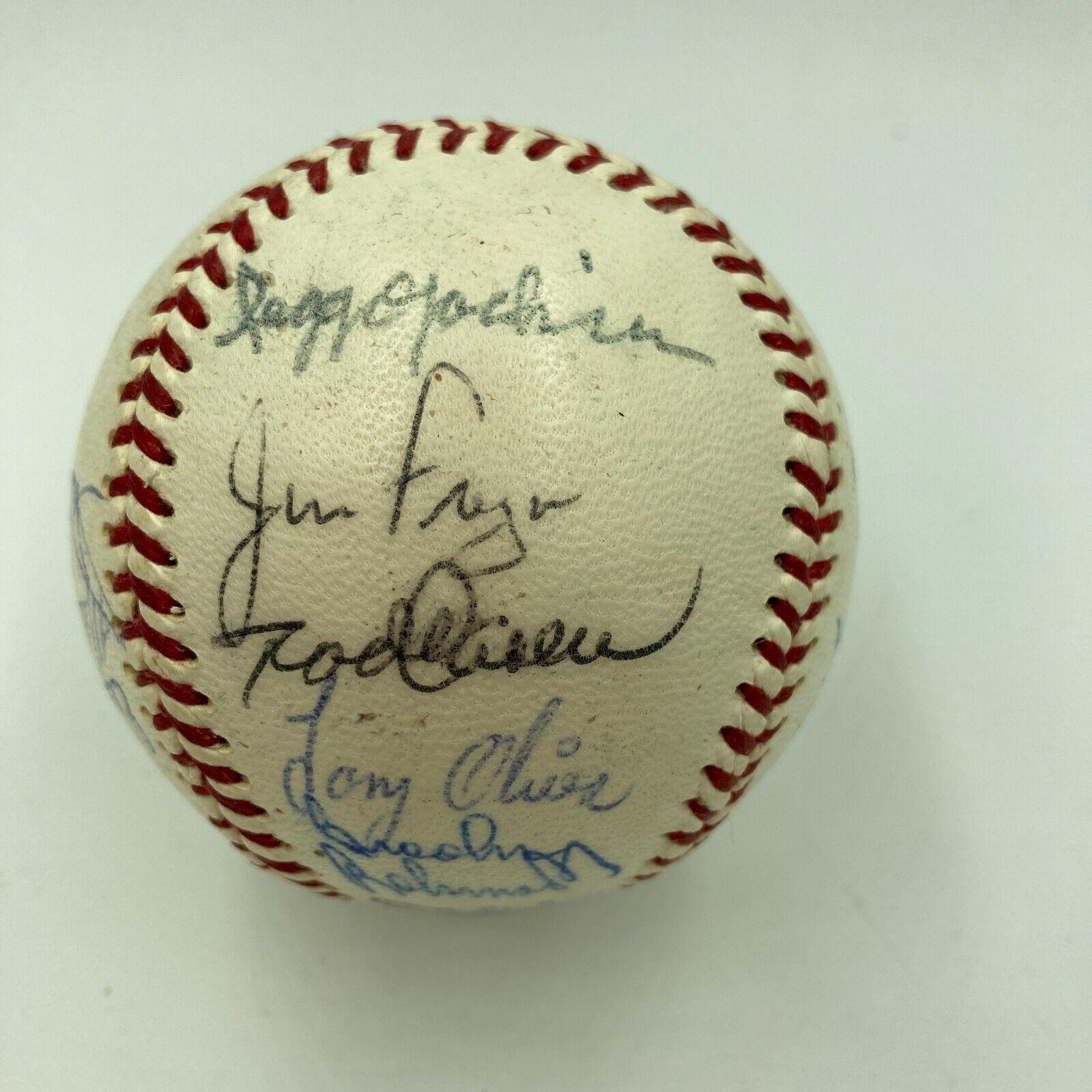 17 signatures, with Earl Weaver, Harmon Killebrew, Rod Carew, Brooks Robinson, Carl Yastrzemski (clubhouse), Tony Oliva, Boog Powell, Mel Stottlemyre, Sal Bando, Reggie Jackson (clubhouse), Paul Blair, Jim Fregosi, Ellie Rodriguez, Mincher, Petrocelli, Reggie Smith and McDowell.