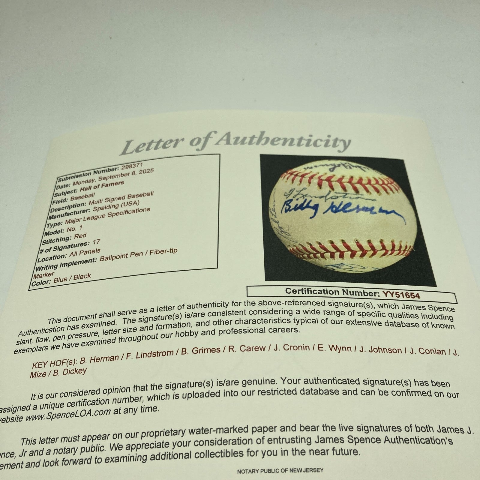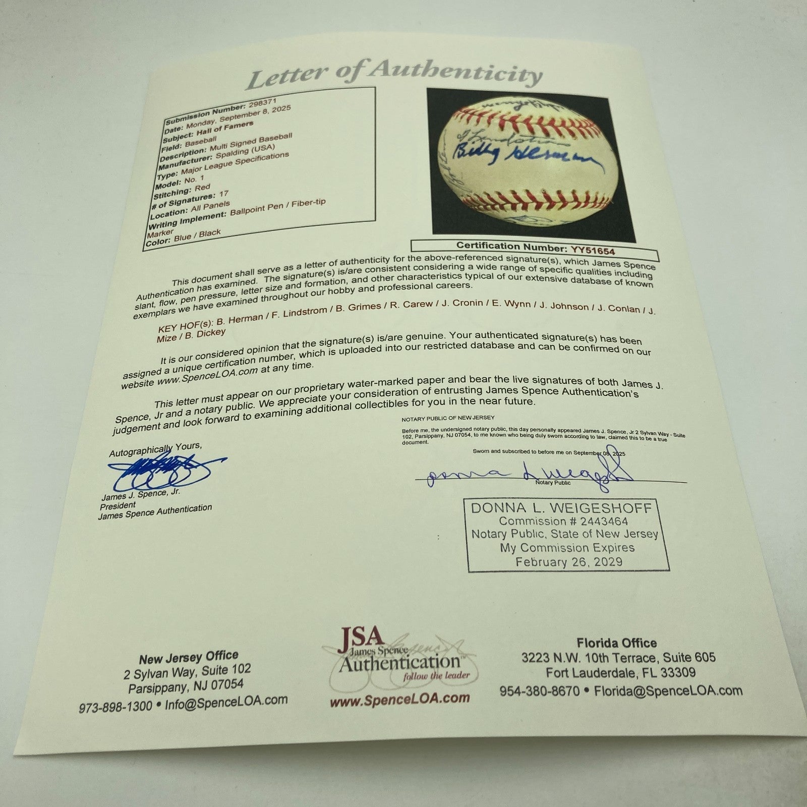 1970's HOF Multi Signed Baseball Freddie Lindstrom Burleigh Grimes JSA