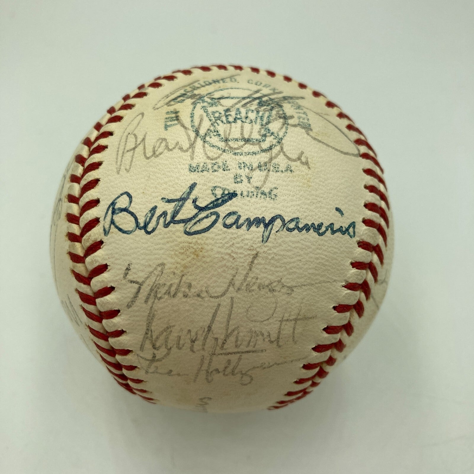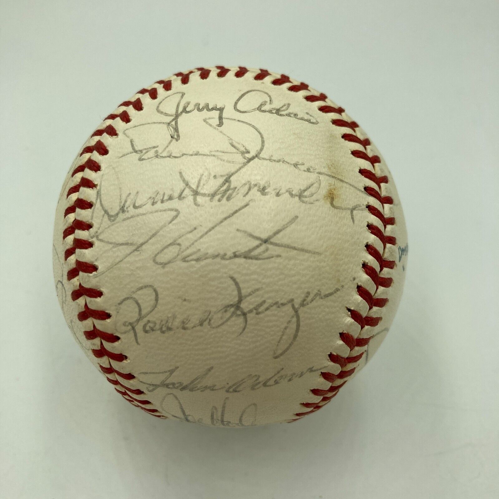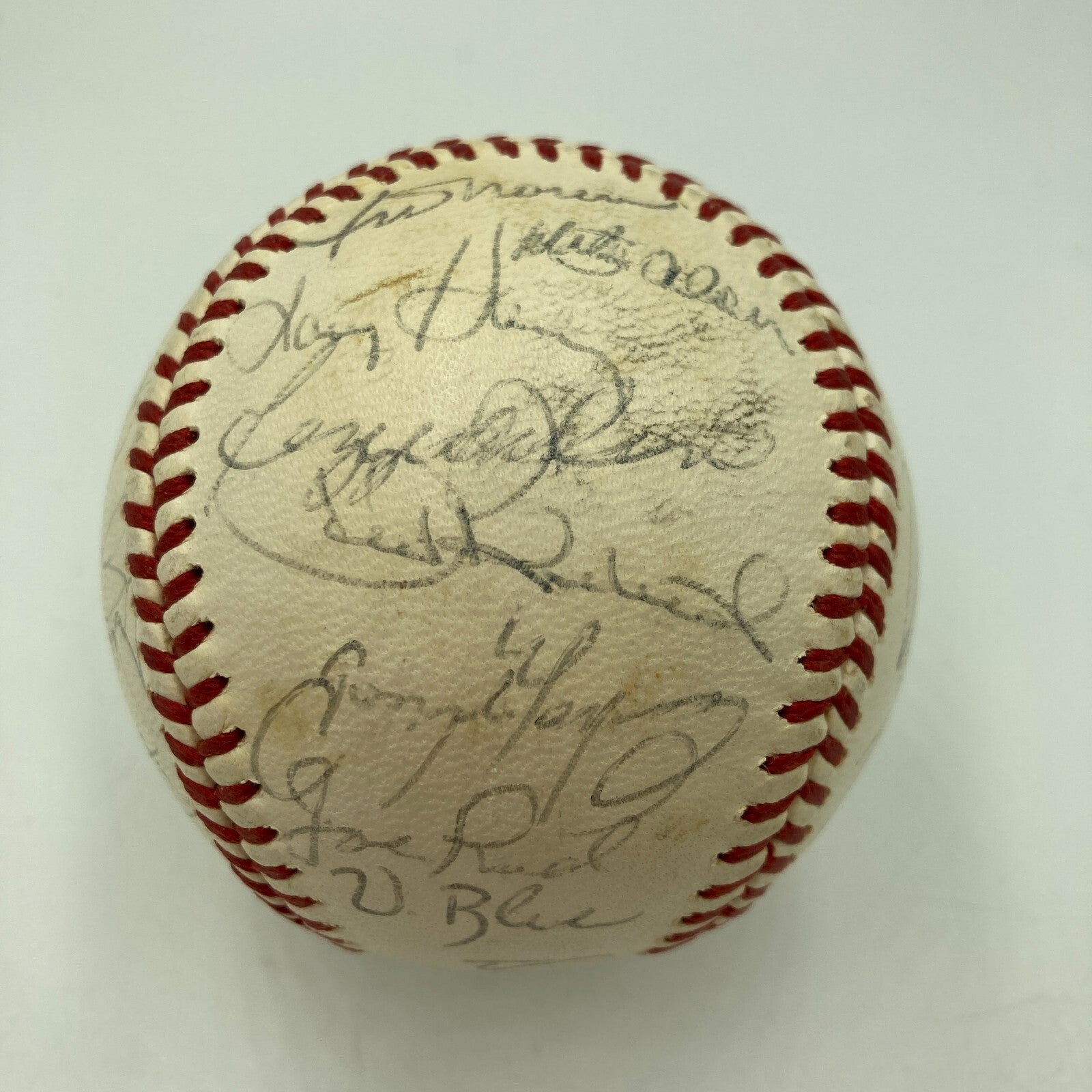 With manager Dick Williams and "72" commanding the sweet spot, this Reach Official American League baseball houses 27 signatures from the World Champion 1972 Oakland Athletics team. Hall of Famers Reggie Jackson and Catfish Hunter have signed the orb, with other key signatures including Blue, Duncan, Knowles, Campanaris, Maxvill, Hegan, and Hendrick. Full letter LOA from JSA.