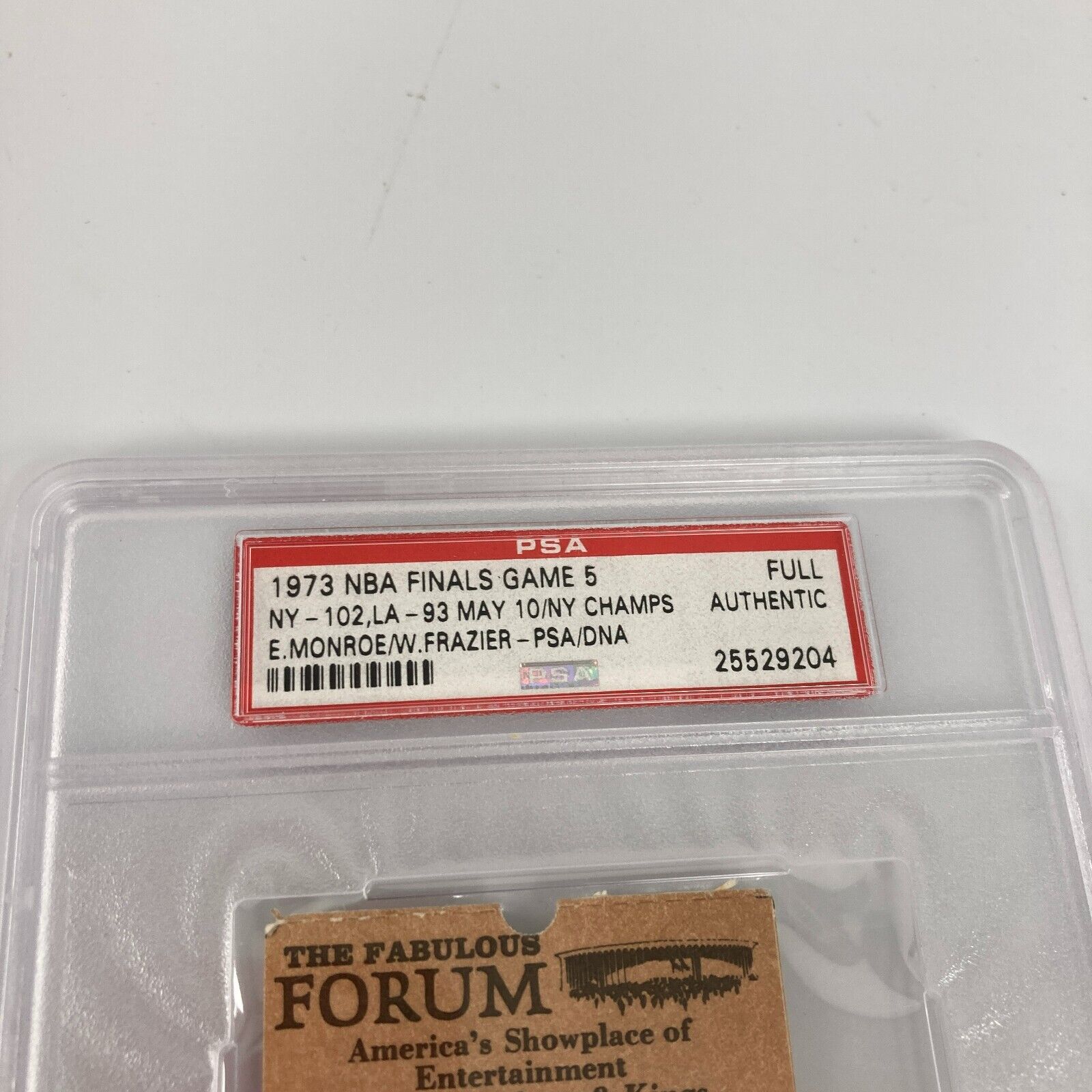 1973 New York Knicks NBA Finals Game 5 (Game clinching game) Signed Full Ticket. PSA DNA certified. May 10 1973. Signed by Walt Frazier and Earl Monroe.