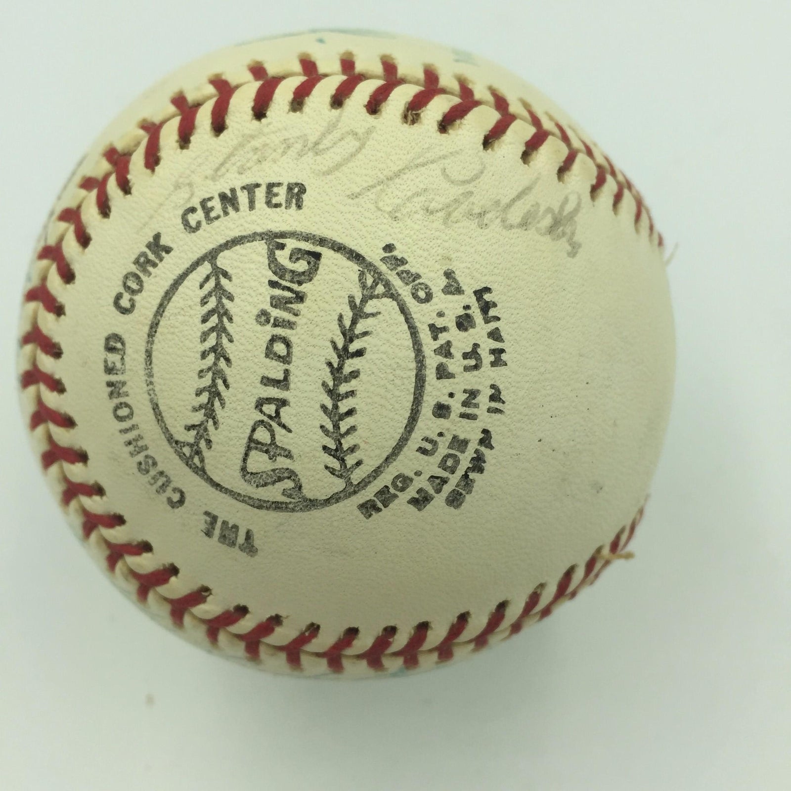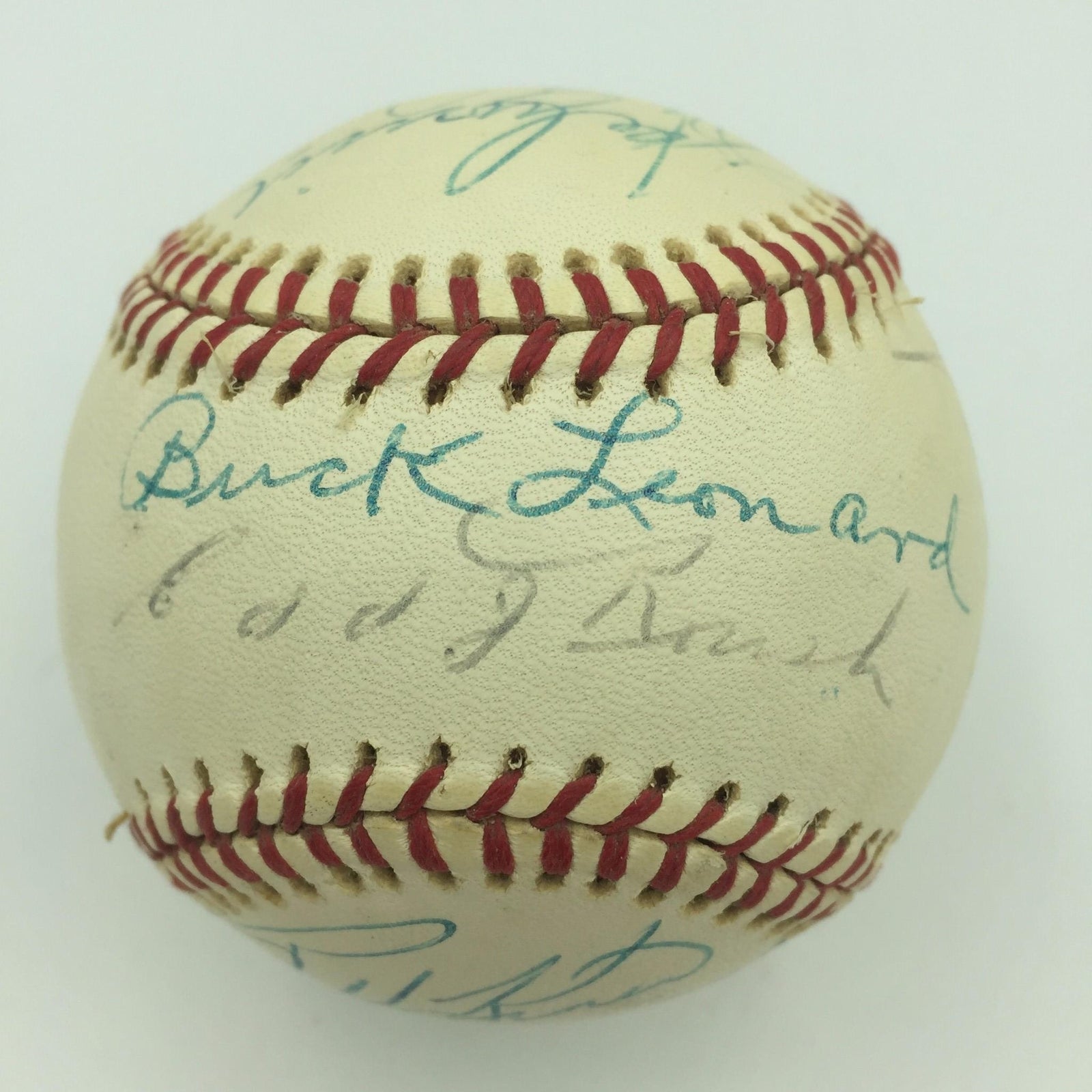 1976 Hall Of Fame Induction Day Multi Signed National League Baseball. 15 signatures with Ted Williams, Buck Leonard, Edd Roush, Ralph Kiner, Red Ruffing, Freddie Lindstrom, Earl Averill, Stan Coveleski, George Kelly, Joe Cronin, Monte Irvin, Bob Feller, Judy Johnson, Lloyd Waner and Jocko Conlan. Comes with full letter JSA COA.