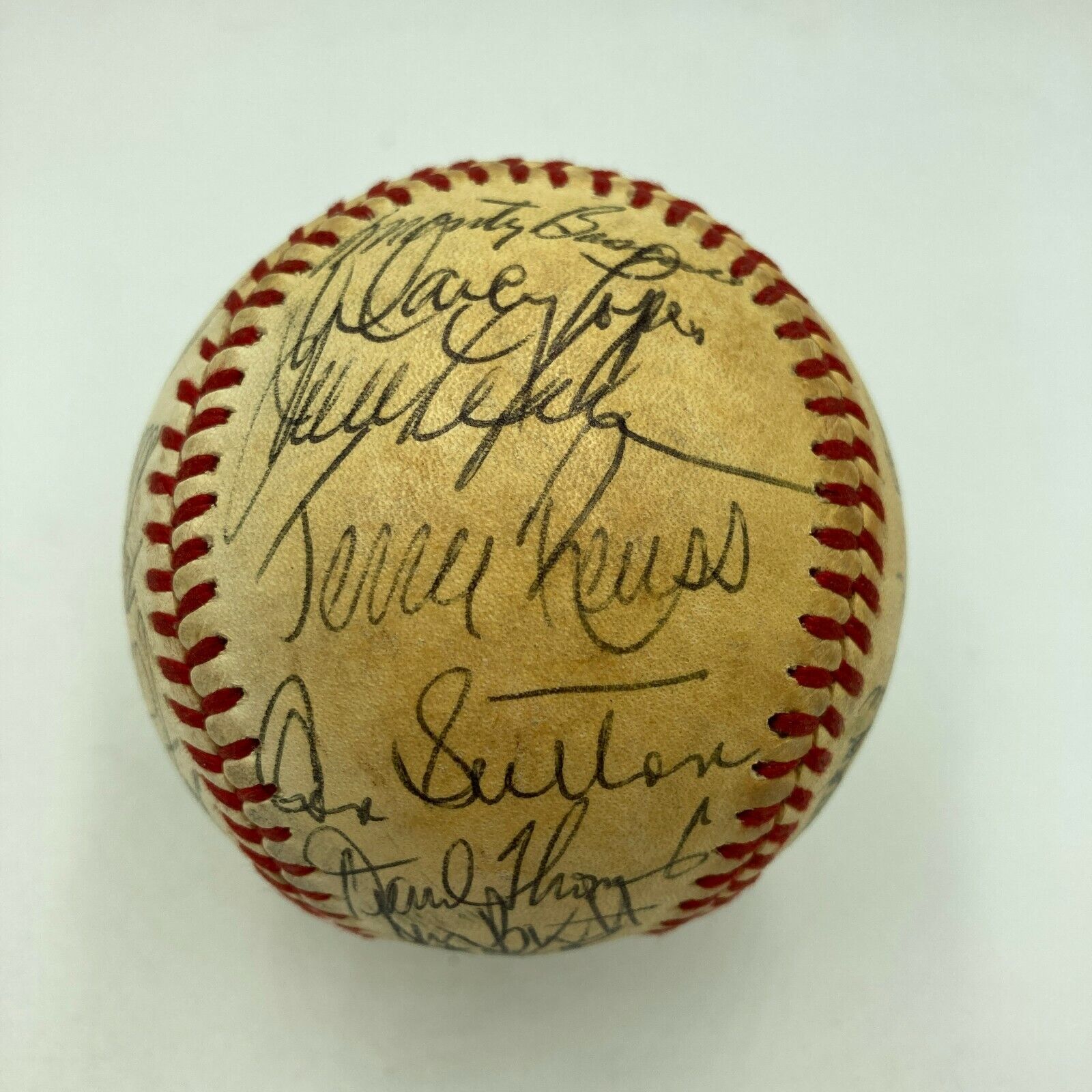 1979 Los Angeles Dodgers Team Signed Baseball. Offered is a Rawlings baseball (ONL, Feeney) signed by members of the 1979 Los Angeles Dodgers. Signees include Tommy Lasorda, Don Sutton, Steve Garvey, Rick Sutcliffe, Johnny Oates, Charlie Hough.