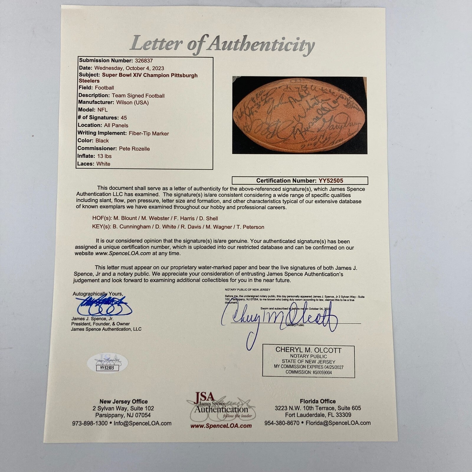 Comes with full letter JSA COA.