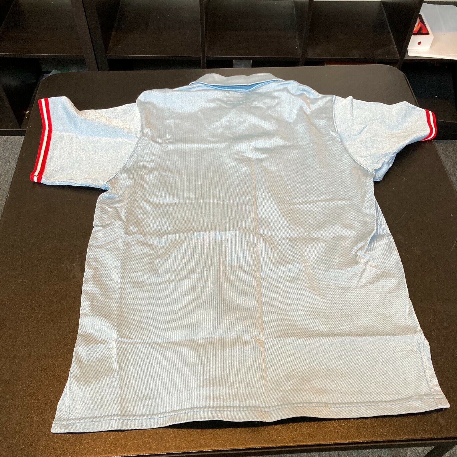 Offered here is The Mailman's game worn Louisiana Tech warmup jacket. The baby blue nylon knit features a blue six-snap-button front, pointed lapels, and red/white sleeve cuff. Best of all is the large "T" superimposed over the state of Louisiana on the left chest and "32" at the lower right tail, all sewn-on in red/white/blue tackle twill. There is also a lone "Powers Athletic Wear 46" manufacturer's/size tag residing in the collar. This specimen exhibits appropriate while remaining in exemplary condition.
