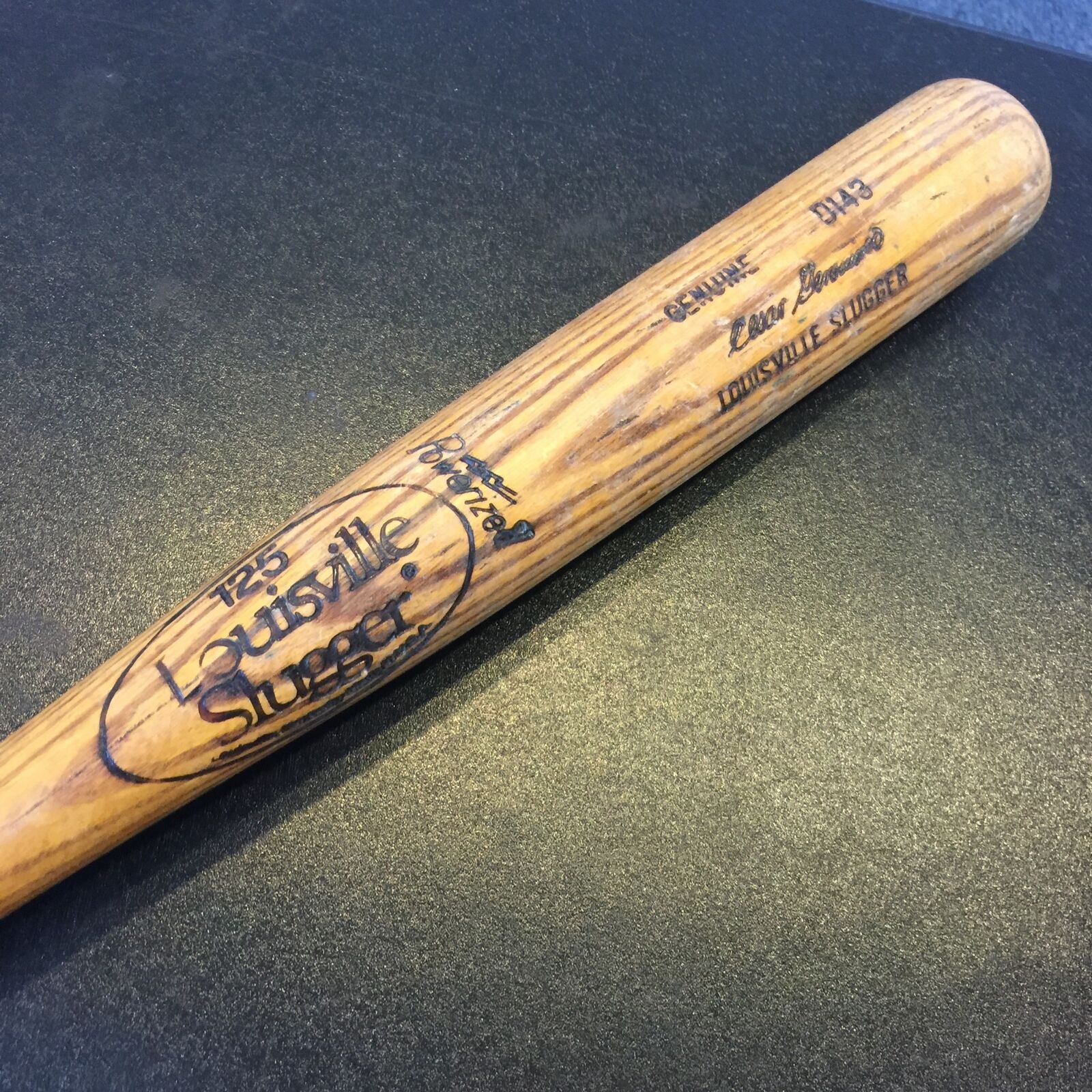 1983 Cesar Geronimo Game Used Louisville Slugger Baseball Bat. The bat shows heavy game use. This bat was used in the famous Pine Tar game in Yankee Stadium on July 24,1983. Cesar inscribed the bat "NY NY". The bat is authenticated by PSA DNA. Comes with full photo Certificate Of Authenticity from PSA DNA. Comes from the collection of a 40+ MLB employee.