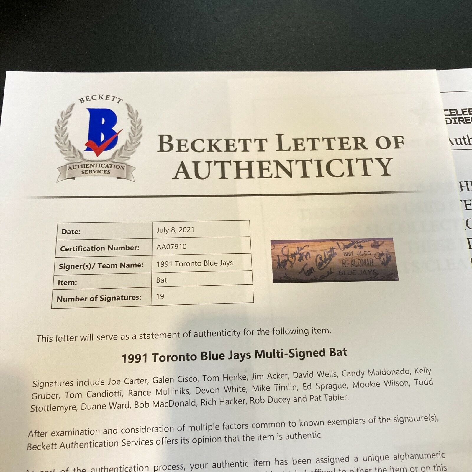 1991 Toronto Blue Jays Team Signed Roberto Alomar Playoffs Game Used Bat Beckett