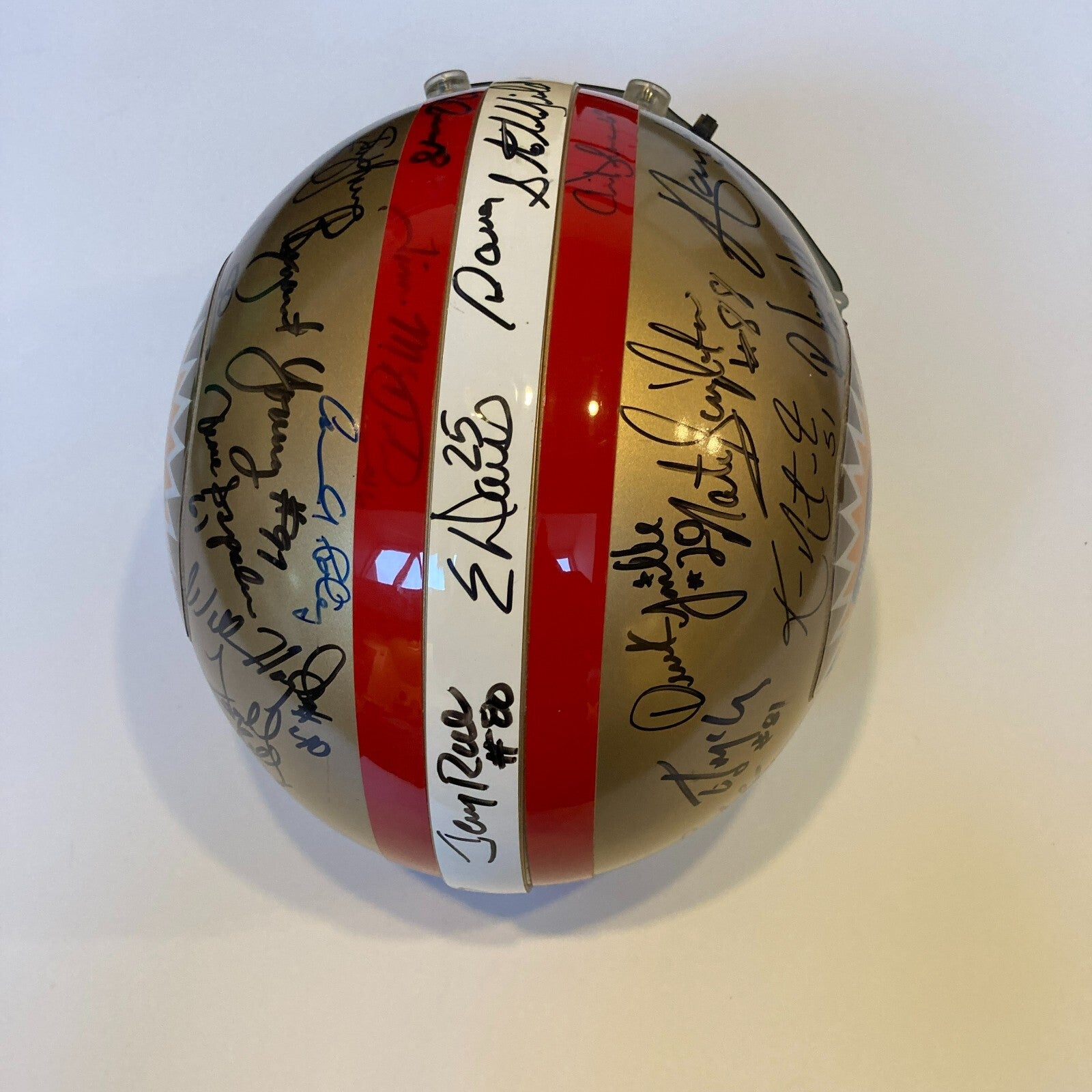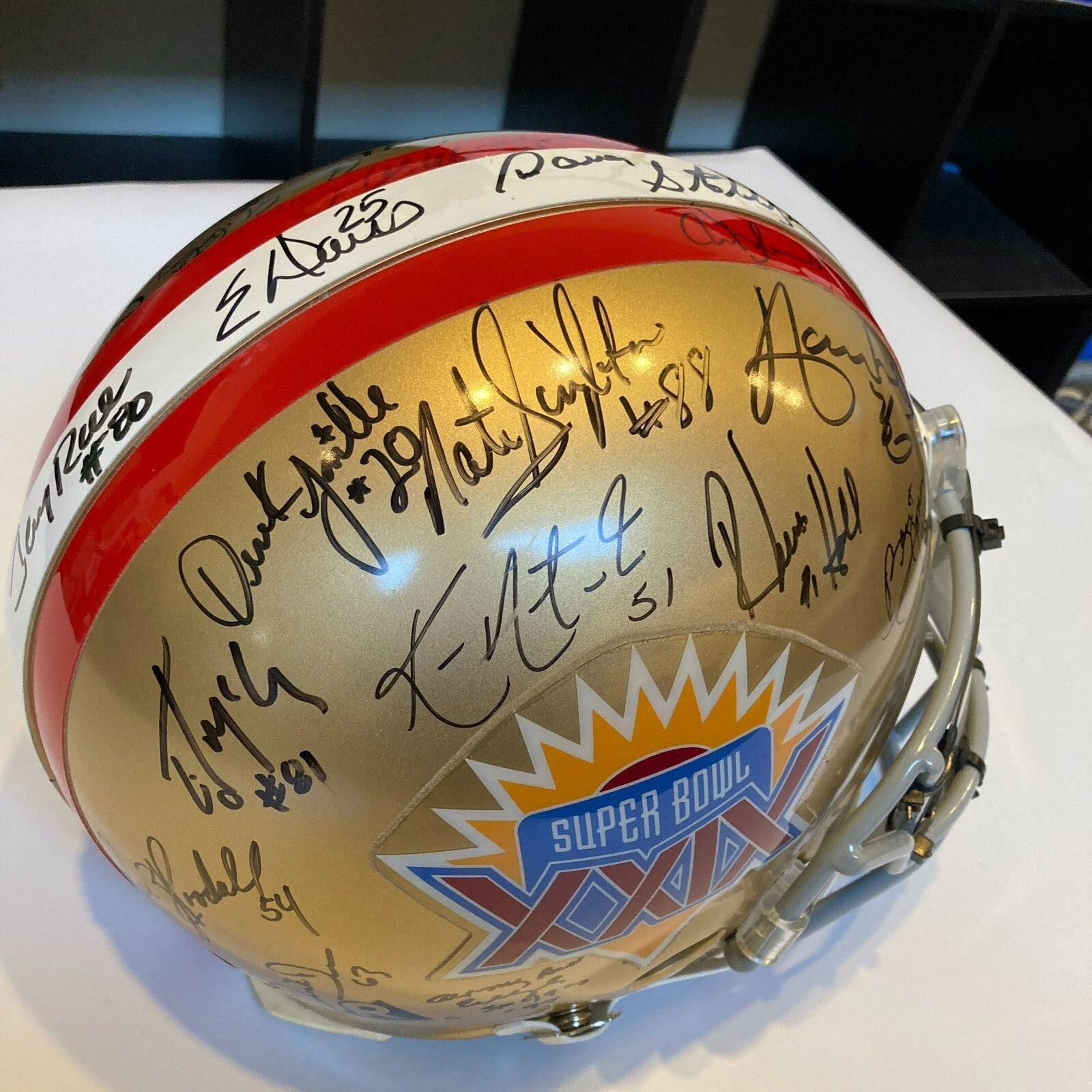 Beautiful 1994 San Francisco 49ers Super Bowl XXIX Champs Team Signed Full Size Authentic Helmet. 29 signatures with Jerry Rice, Steve Young and the rest of the team.