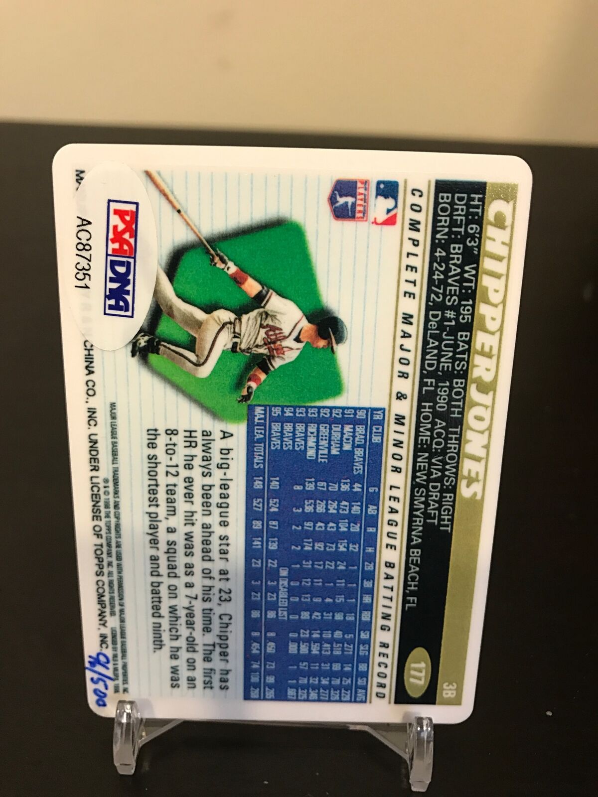1996 Topps Chipper Jones Rookie Signed Porcelain Baseball Card PSA DNA COA