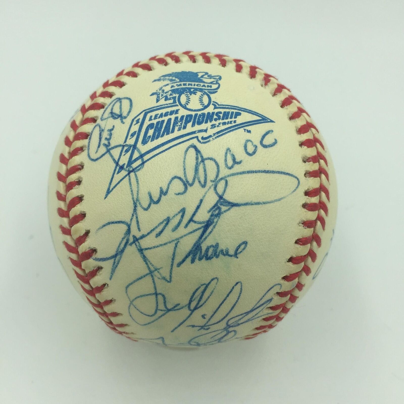 Rare 1998 Cleveland Indians Team Signed American League Postseason ALCS Series Baseball. 26 signatures with Jim Thome, Kenny Lofton and many others. Comes with full letter JSA COA.