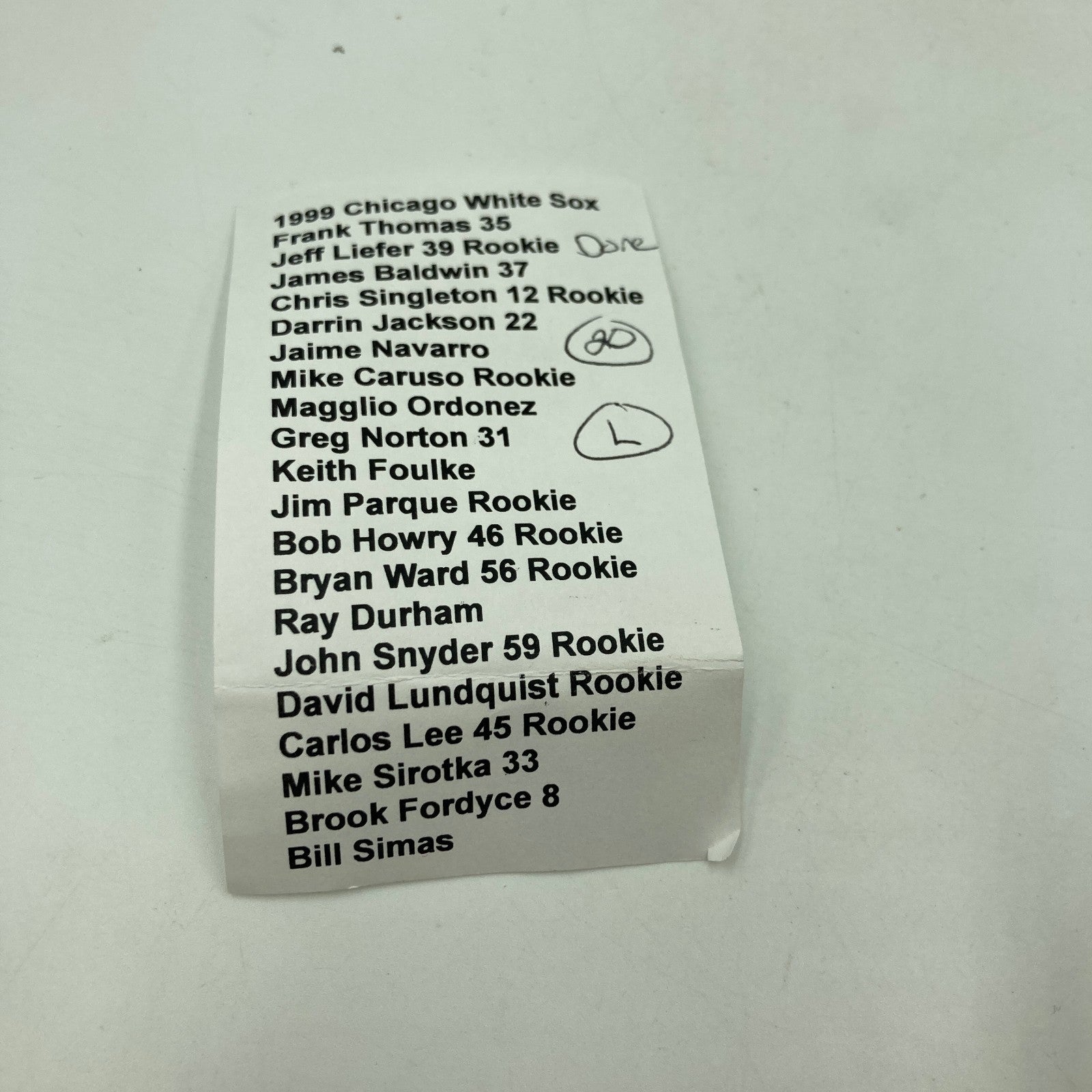 Click or scroll to zoom Tap or pinch to zoom Click or scroll to zoom Tap or pinch to zoom Click or scroll to zoom Tap or pinch to zoom Click or scroll to zoom Tap or pinch to zoom Click or scroll to zoom Tap or pinch to zoom Click or scroll to zoom Tap or pinch to zoom Click or scroll to zoom Tap or pinch to zoom Click or scroll to zoom Tap or pinch to zoom Click or scroll to zoom Tap or pinch to zoom Click or scroll to zoom Tap or pinch to zoom Click or scroll to zoom Tap or pinch to zoom Click or scroll to zoom Tap or pinch to zoom Click or scroll to zoom Tap or pinch to zoom Click or scroll to zoom Tap or pinch to zoom Click or scroll to zoom Tap or pinch to zoom Click or scroll to zoom Tap or pinch to zoom Click or scroll to zoom Tap or pinch to zoom 1999 Chicago White Sox Team Signed Baseball Frank Thomas Beckett COA $199.00 1 2 3 4 5 6 7 8 9 10+ Quantity Quantity Add to cart This item is a deferred, subscription, or recurring purchase. By continuing, I agree to the cancellation policy and authorize you to charge my payment method at the prices, frequency and dates listed on this page until my order is fulfilled or I cancel, if permitted. 1999 Chicago White Sox Team Signed Baseball with 20 signatures.Comes with full letter Beckett COA. D#79
