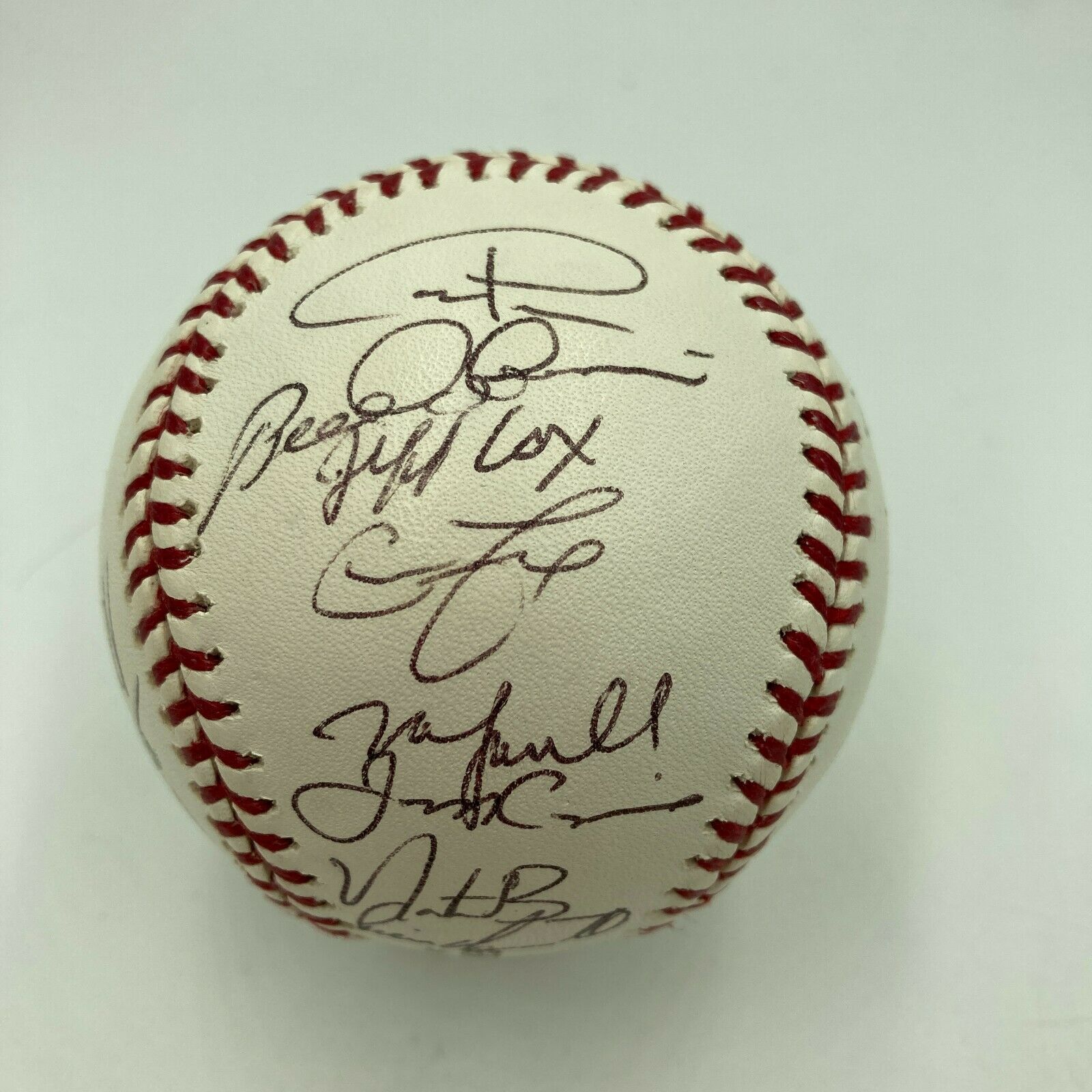 “The Fish” hooked the hapless New York Yankees by a 4-2 margin to win the 2003 World Series. Celebrate the National League squad with the offered game-used and signed Game 3 baseball with (26) autographs. The creamy commemorative Official World Series ball is graced with signatures including: Banks, Beckett, Bump, Castillo, Conine, J. Encarnacion, Fox, A. Gonzalez, L. Harris, Helling, Hollandsworth, D. Lee, Looper, Lowell, McKeon (manager), Mordecai, Pavano, Penny, Pierre, Redman, Redmond, I. Rodriguez, Tejera, Urbina and Willis. MLB hologram accompanies.
