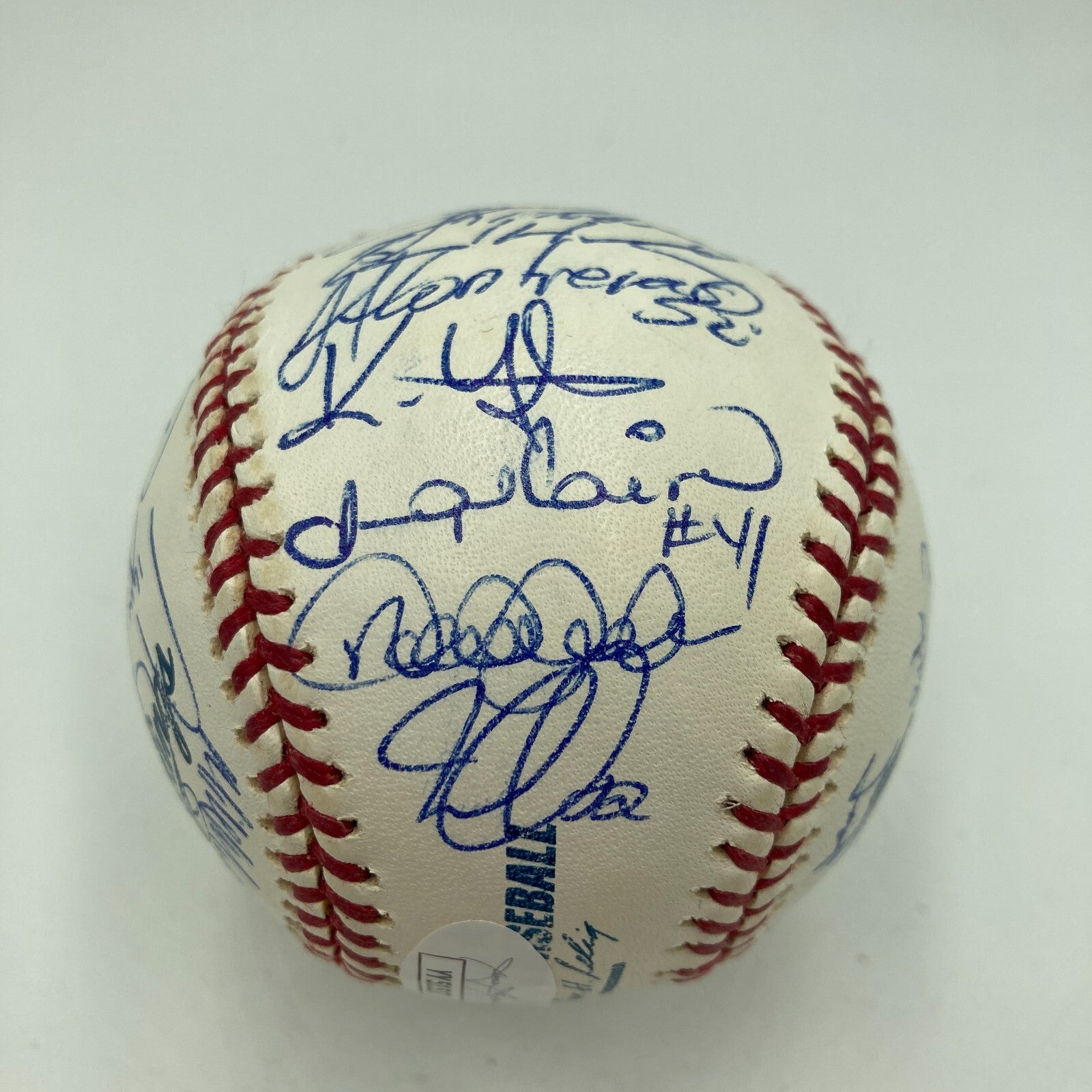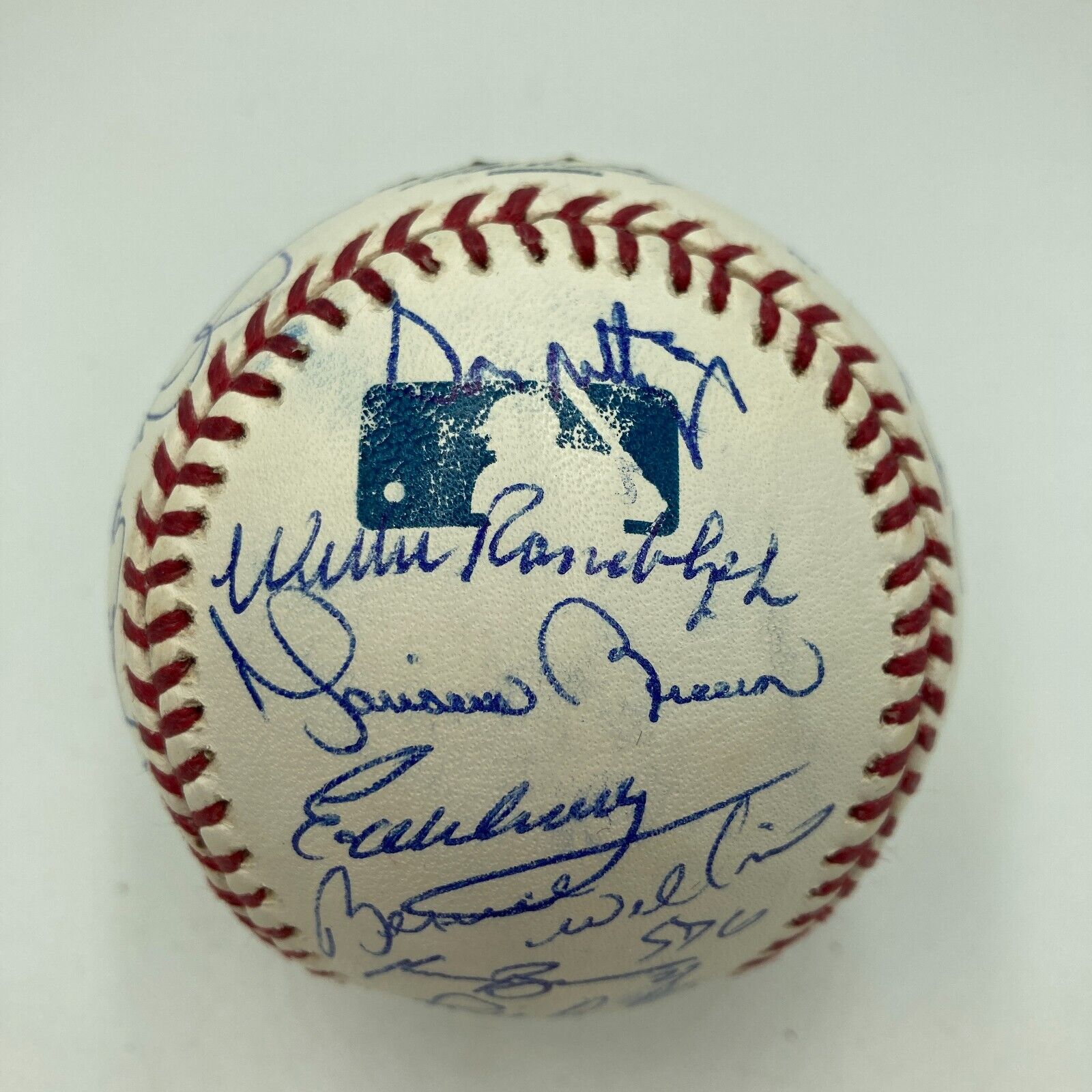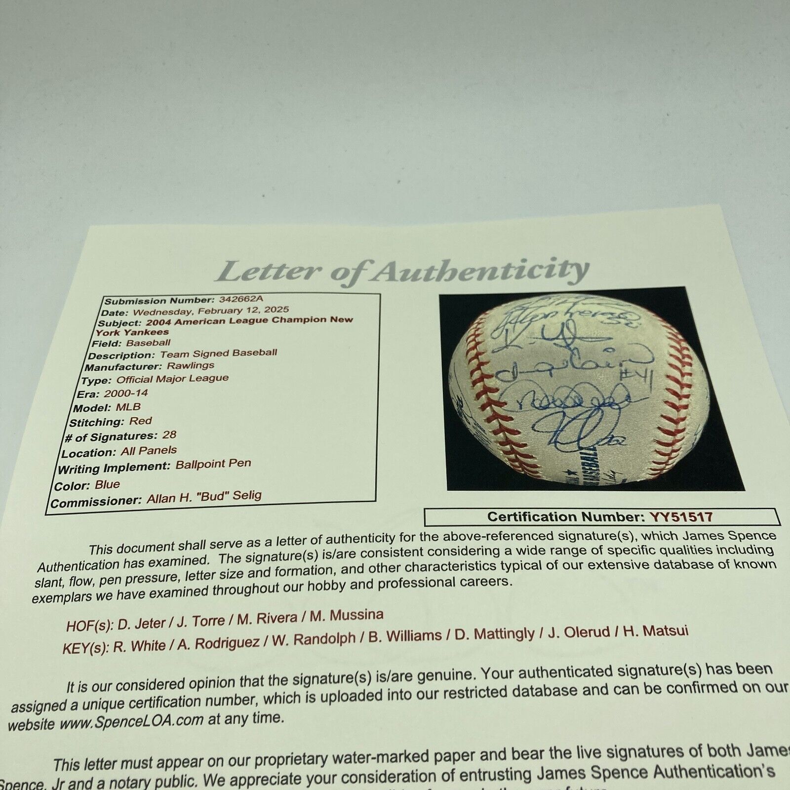 An Official Major League Baseball (Selig) signed by members of the 2004 New York Yankees team. The ball has been signed by several Hall of Famers and stars including: Joe Torre, Derek Jeter, Mike Mussina, Mariano Rivera, Bernie Williams. Hideki Matsui, Willie Randolph, John Olerud, and Don Mattingly. The 2004 Yankees stormed out to a 3-0 series lead against the rival Red Sox before losing the series 4-3.