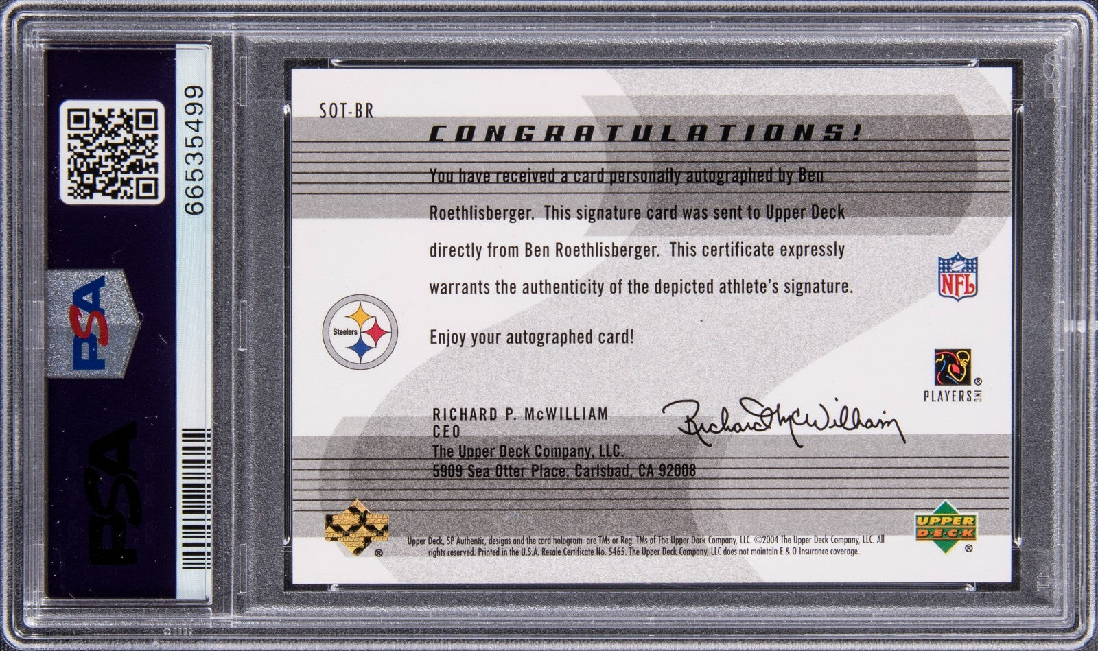 2004 UD SP Authentic Sign of the Times Ben Roethlisberger Auto RC PSA 8 Auto 10