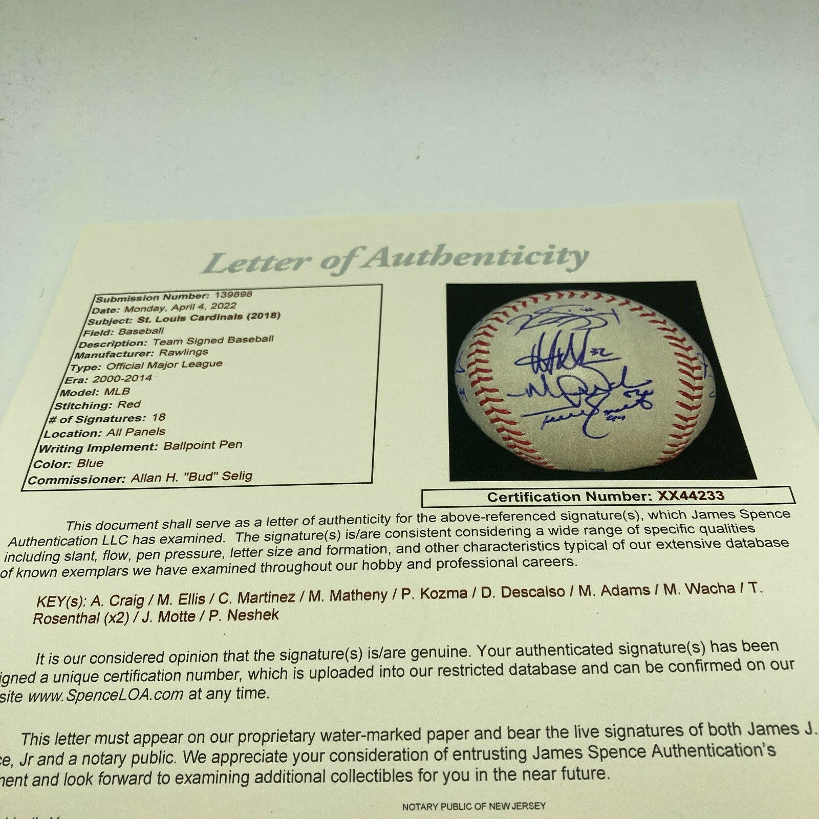 Click or scroll to zoom Tap or pinch to zoom Click or scroll to zoom Tap or pinch to zoom Click or scroll to zoom Tap or pinch to zoom Click or scroll to zoom Tap or pinch to zoom Click or scroll to zoom Tap or pinch to zoom Click or scroll to zoom Tap or pinch to zoom Click or scroll to zoom Tap or pinch to zoom Click or scroll to zoom Tap or pinch to zoom 2018 St. Louis Cardinals Team Signed Major League Baseball With JSA COA $299.00 1 2 3 4 5 6 7 8 9 10+ Quantity Quantity Add to cart This item is a recurring or deferred purchase. By continuing, I agree to the cancellation policy and authorize you to charge my payment method at the prices, frequency and dates listed on this page until my order is fulfilled or I cancel, if permitted. 2018 St. Louis Cardinals Team Signed Major League Baseball. Comes with full letter JSA COA. #91594883723 D#57