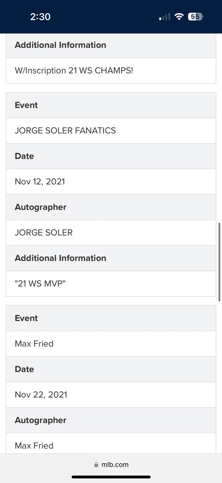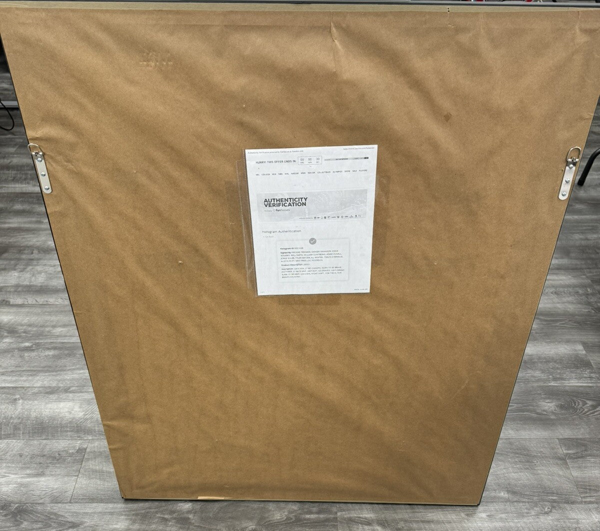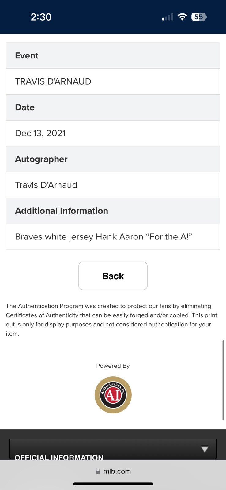 This 36x44 framed Authentic Mitchell & Ness Hank Aaron 1974 model jersey is signed by 13 members of the World Champion 2021 Atlanta Braves. Signatures include: Freddie Freeman, Dansby Swanson, Eddie Rosario, Will Smith, William Contreras, Adam Duvall, Jorge Soler, Tyler Matzek, AJ Minter, Travis D'Arnaud, Austin Riley, Max Fried and Joc Pederson. Each player signed in black Sharpie and added a unique inscription. The jersey is hand-numbered 12/21 and includes both MLB and Fanatics holograms affixed.