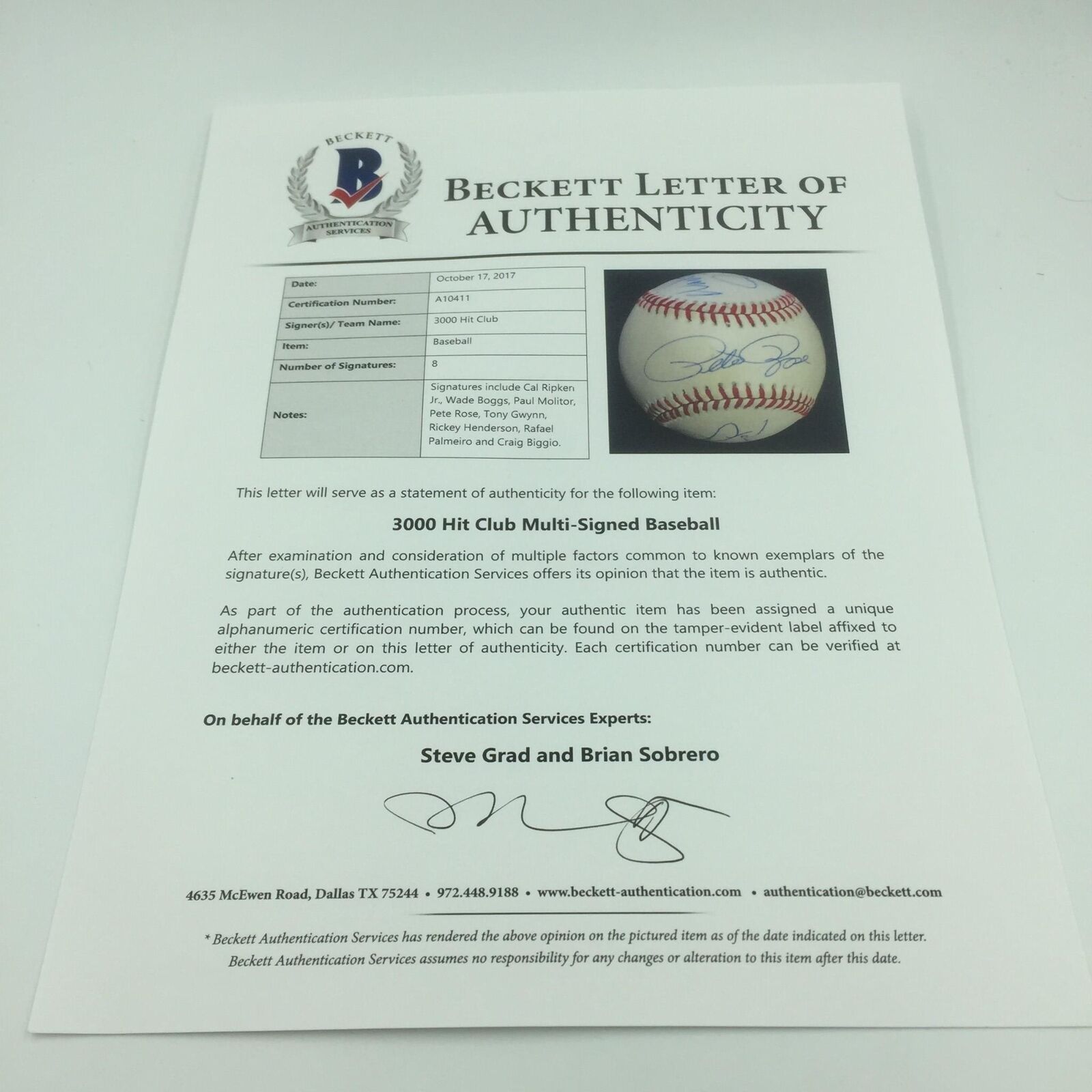 3000 Hit Club Signed Baseball Cal Ripken Rose Biggio Gwynn Henderson Beckett COA