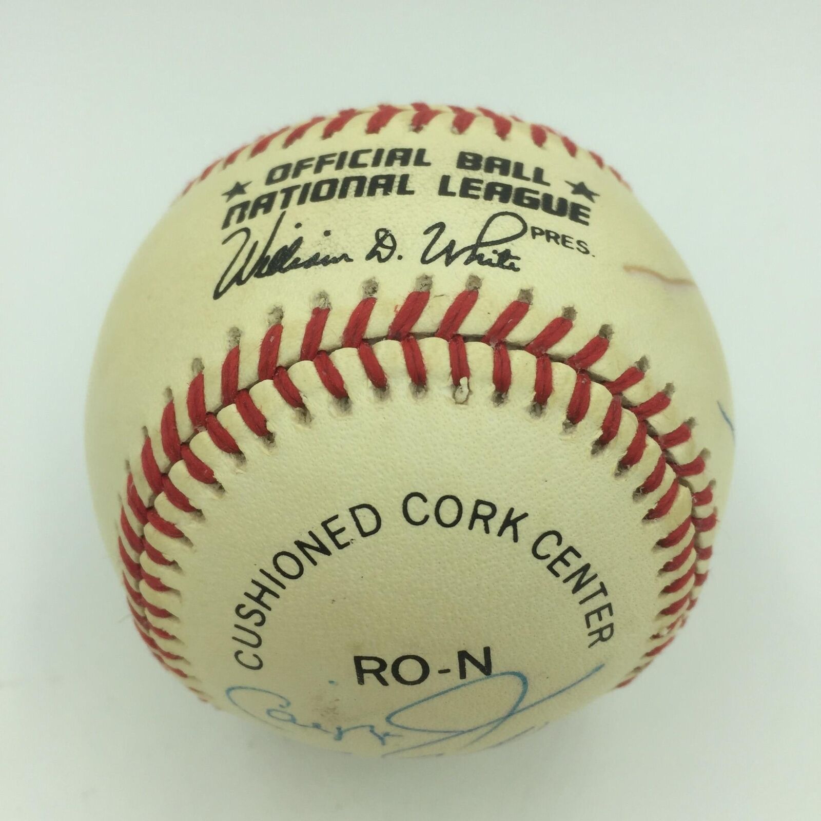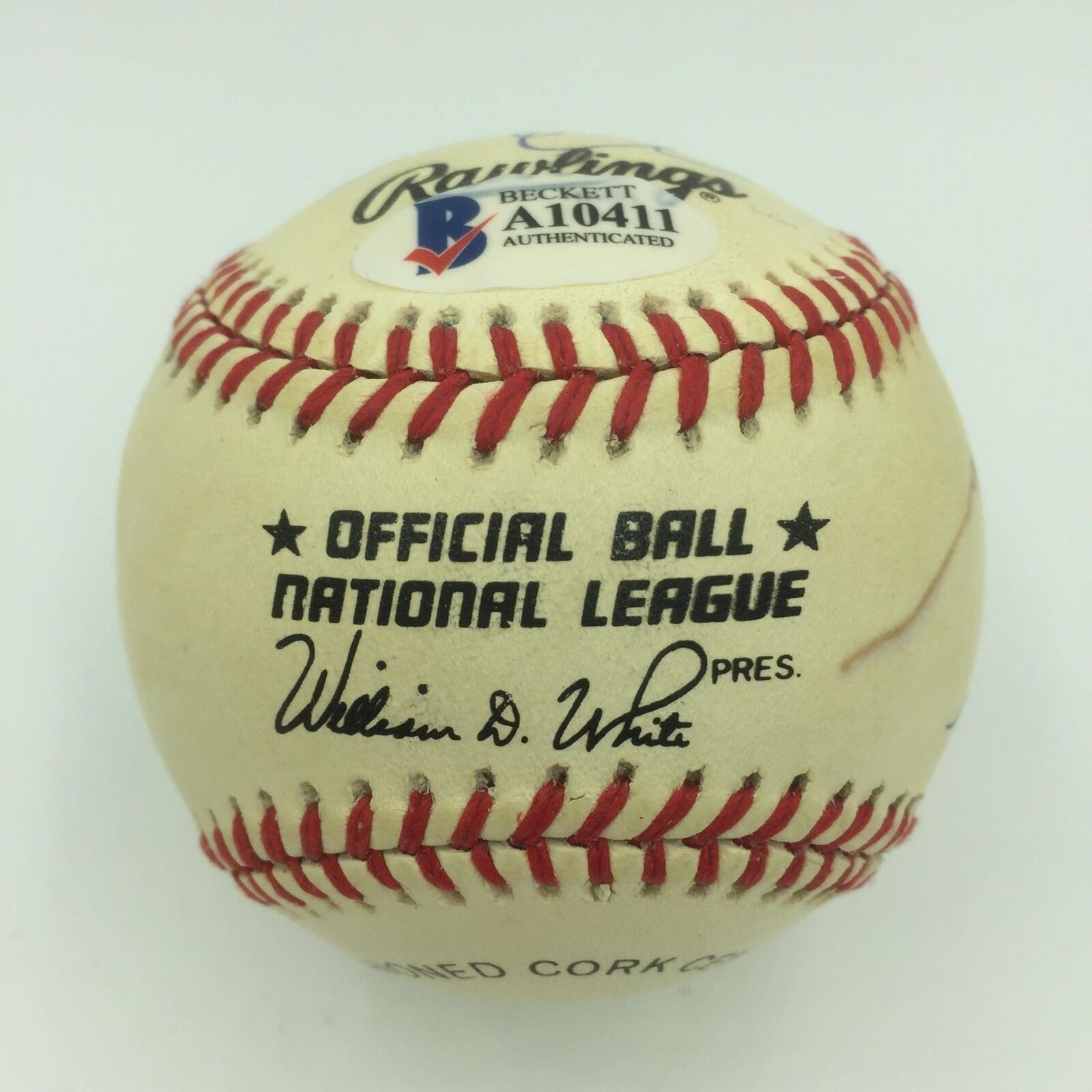 This Official National League baseball features eight signatures from the 3000 Hit Club, with Pete Rose on the sweet spot. Other signatures include: Wade Boggs, Paul Molitor, Cal Ripken, Craig Biggio, Tony Gwynn, Rickey Henderson and Rafael Palmeiro. Full letter COA from Beckett.