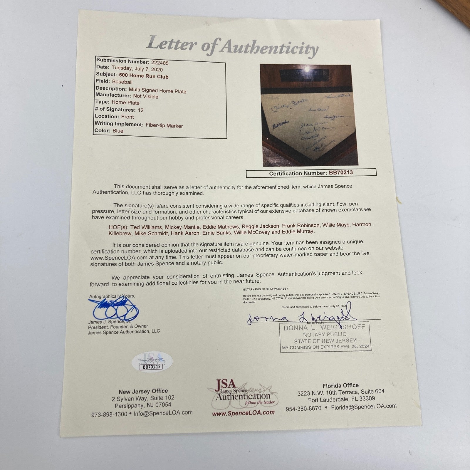 500 Home Run Signed Home Plate 12 Sigs Mickey Mantle Ted Williams JSA COA