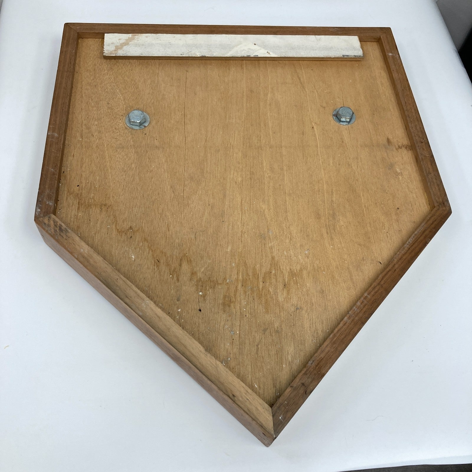 Baseball 500 Home Run Club Signed Home Plate (12 Signatures). This home plate is signed by 12 legendary members of the Baseball 500 Home Run Club, including Mickey Mantle, Hank Aaron, Willie Mays, Ted Williams, Ernie Banks, Eddie Murray, Frank Robinson, Eddie Mathews, Reggie Jackson, Willie McCovey, Harmon Killebrew, and Mike Schmidt. Each signature is in blue felt tip pen.