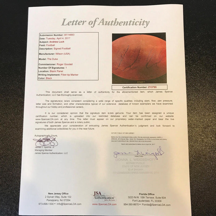 Click or scroll to zoom Tap or pinch to zoom Click or scroll to zoom Tap or pinch to zoom Click or scroll to zoom Tap or pinch to zoom Click or scroll to zoom Tap or pinch to zoom Click or scroll to zoom Tap or pinch to zoom Andrew Luck Signed Autographed Official Wilson NFL The Duke Football JSA COA Sold out 1 2 3 4 5 6 7 8 9 10+ Quantity Quantity Sold out Andrew Luck Signed Autographed Official Wilson NFL The Duke Football JSA COA