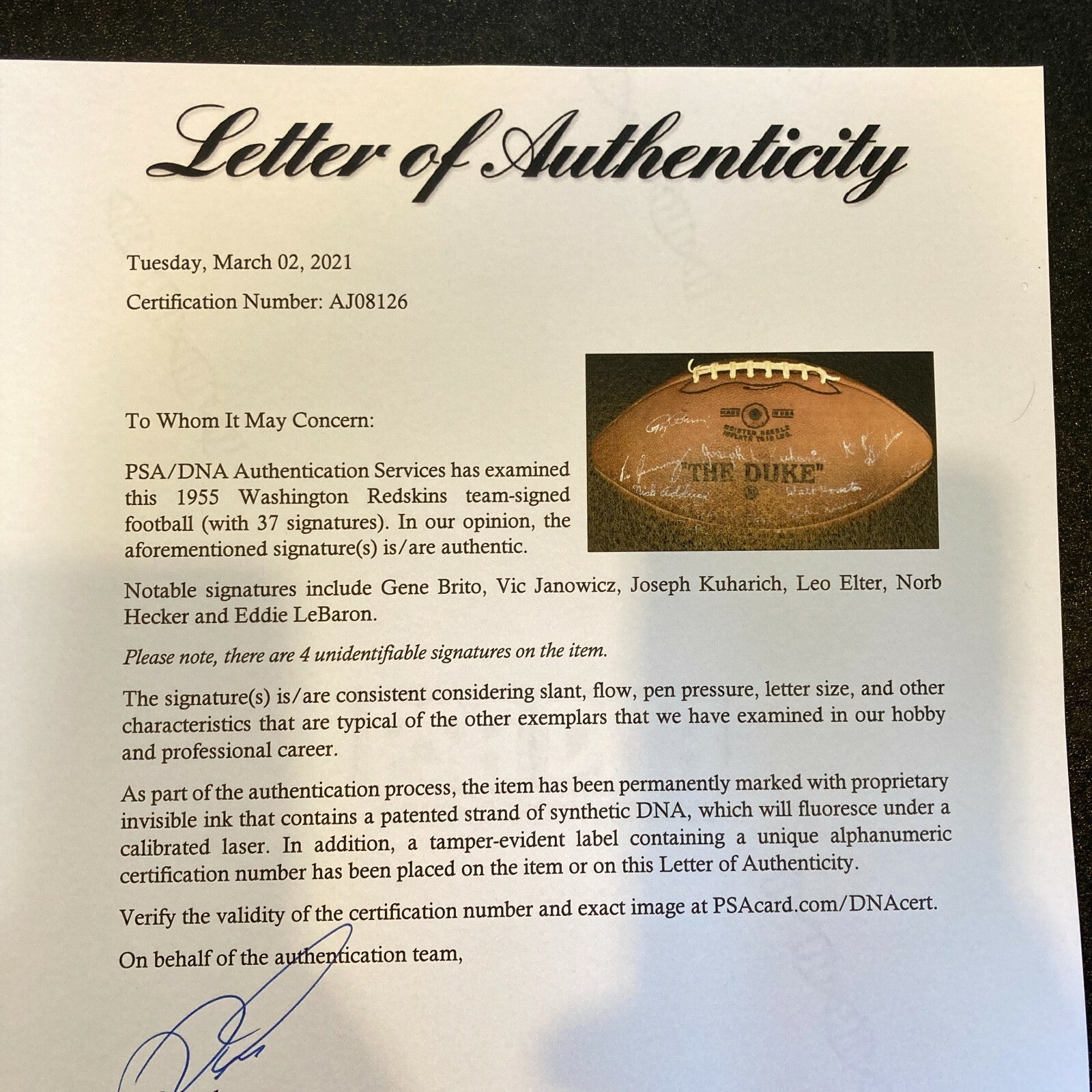 Beautiful 1955 Washington Redskins Team Signed Wilson The Duke Football PSA DNA