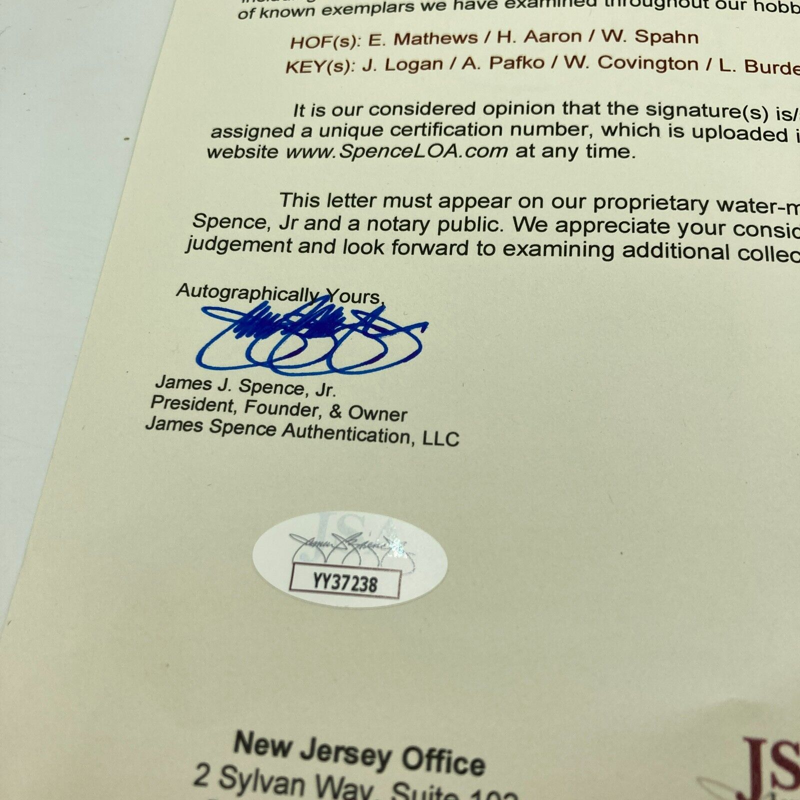 Comes with full letter JSA COA.
