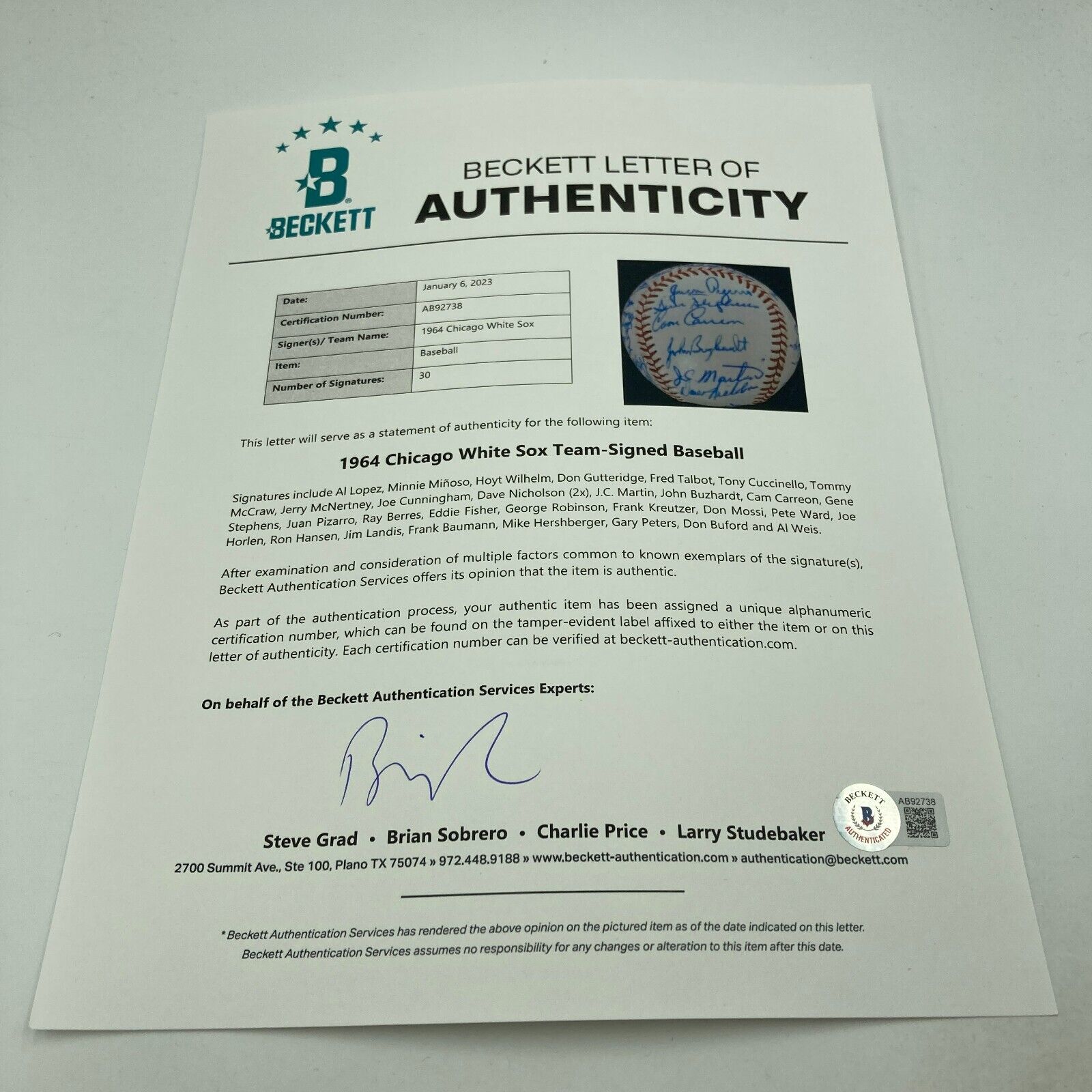 Click or scroll to zoom Tap or pinch to zoom Click or scroll to zoom Tap or pinch to zoom Click or scroll to zoom Tap or pinch to zoom Click or scroll to zoom Tap or pinch to zoom Click or scroll to zoom Tap or pinch to zoom Click or scroll to zoom Tap or pinch to zoom Click or scroll to zoom Tap or pinch to zoom Click or scroll to zoom Tap or pinch to zoom Click or scroll to zoom Tap or pinch to zoom Beautiful 1964 Chicago White Sox Team Signed Baseball Beckett COA Sold out 1 2 3 4 5 6 7 8 9 10+ Quantity Quantity Sold out 1964 Chicago White Sox Team Signed Baseball. Signatures include Minnie Minoso and Hoyt Wilhelm among others. Accompanied by a full Beckett Letter of Authenticity. D#100