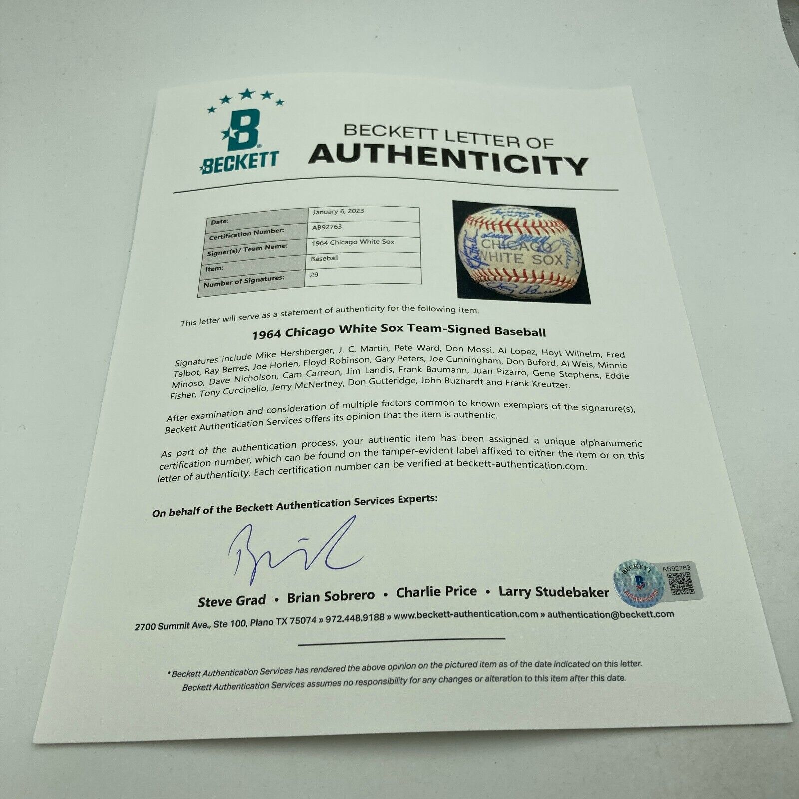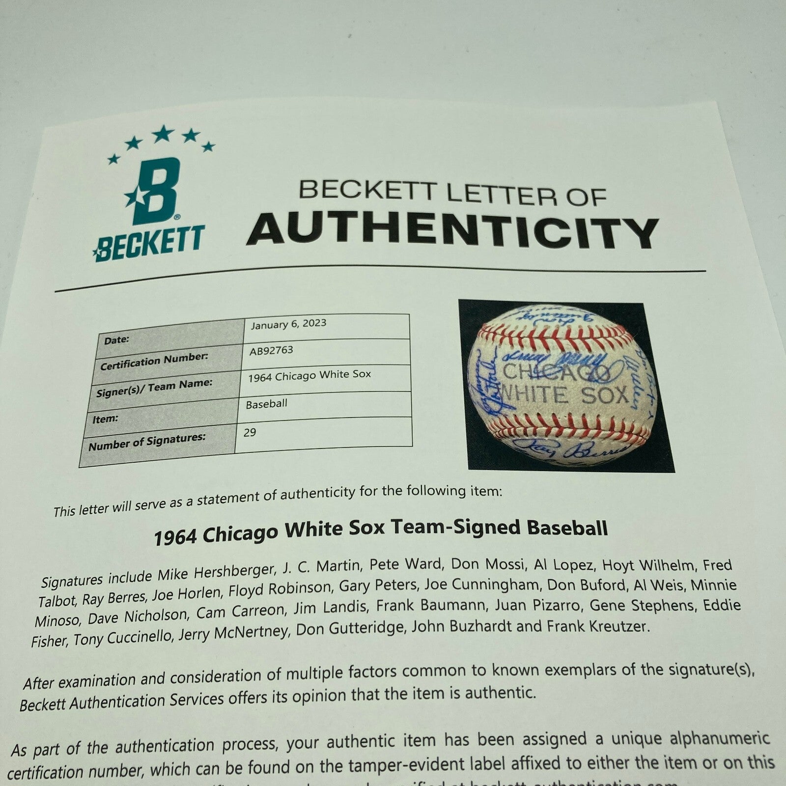 Click or scroll to zoom Tap or pinch to zoom Click or scroll to zoom Tap or pinch to zoom Click or scroll to zoom Tap or pinch to zoom Click or scroll to zoom Tap or pinch to zoom Click or scroll to zoom Tap or pinch to zoom Click or scroll to zoom Tap or pinch to zoom Click or scroll to zoom Tap or pinch to zoom Click or scroll to zoom Tap or pinch to zoom Beautiful 1964 Chicago White Sox Team Signed Baseball Beckett COA $299.00 1 2 3 4 5 6 7 8 9 10+ Quantity Quantity Add to cart This item is a recurring or deferred purchase. By continuing, I agree to the cancellation policy and authorize you to charge my payment method at the prices, frequency and dates listed on this page until my order is fulfilled or I cancel, if permitted. 1964 Chicago White Sox Team Signed Baseball including Minnie Minoso and Hoyt Wilhelm. Accompanied by a full Beckett Letter of Authenticity. D#100
