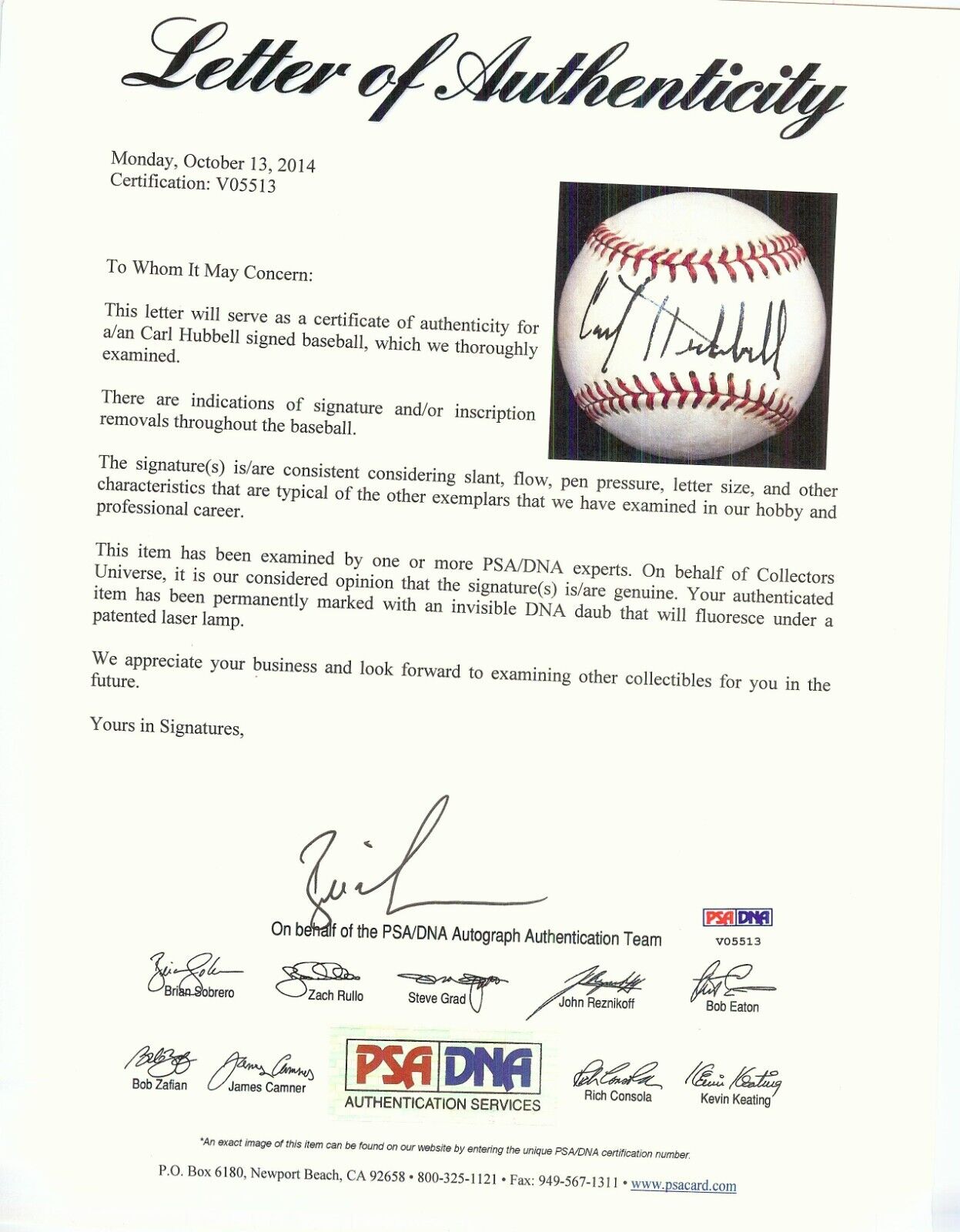 Beautiful Carl Hubbell Vintage 1950's Single Signed Baseball PSA DNA COA