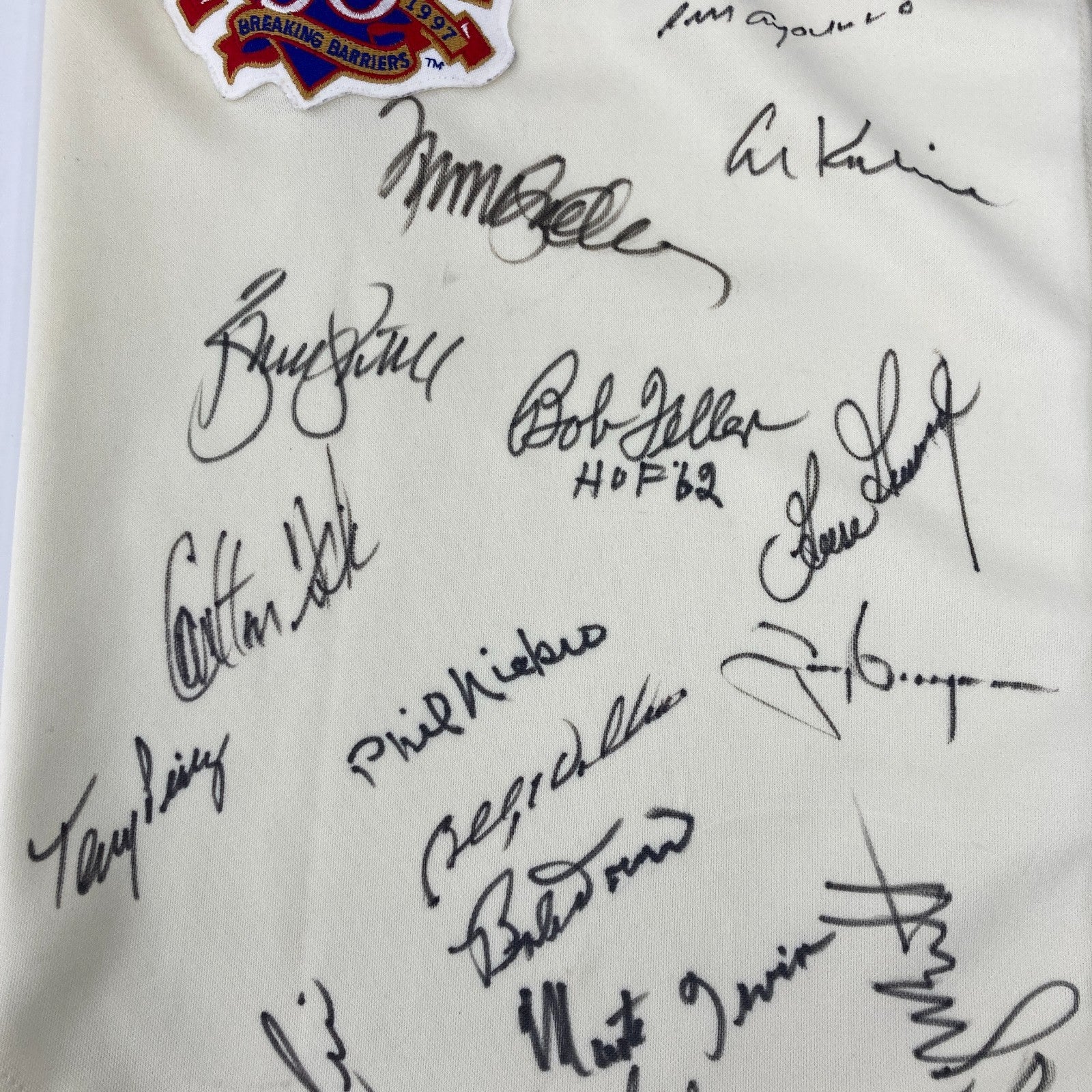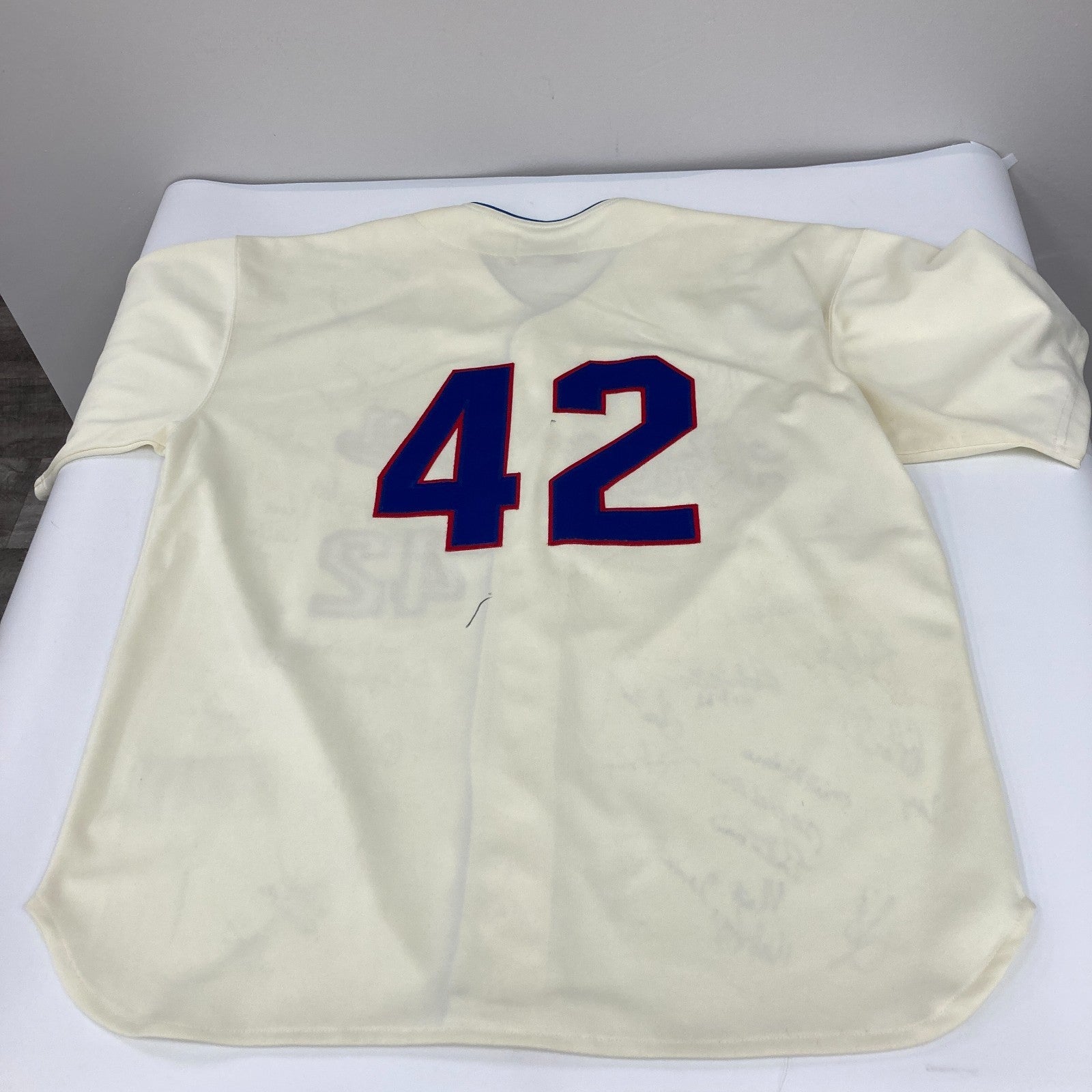 Beautiful Hall Of Fame Multi Signed Jackie Robinson Jersey.