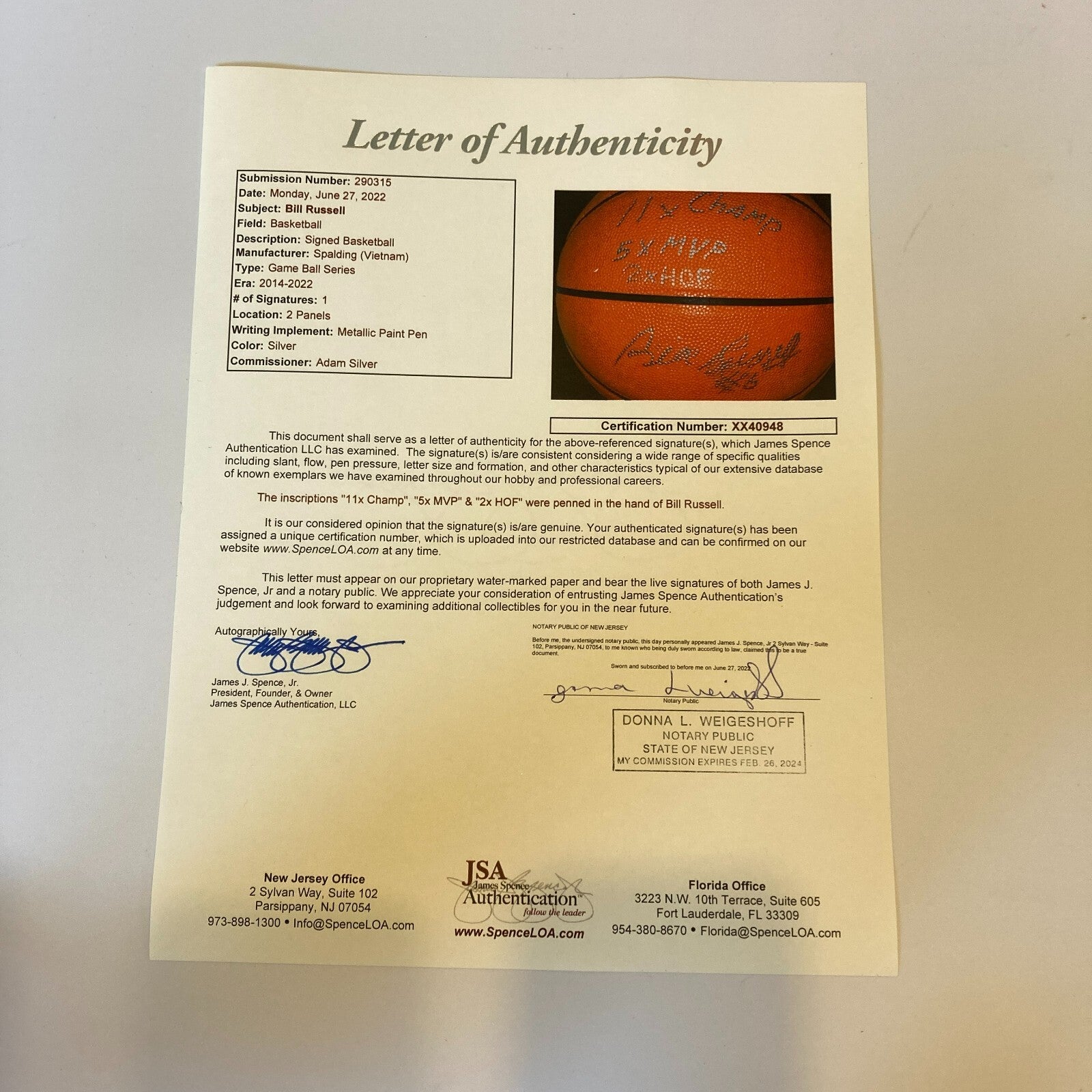 Bill Russell Signed Heavily Inscribed STATS Official NBA Game Basketball JSA COA