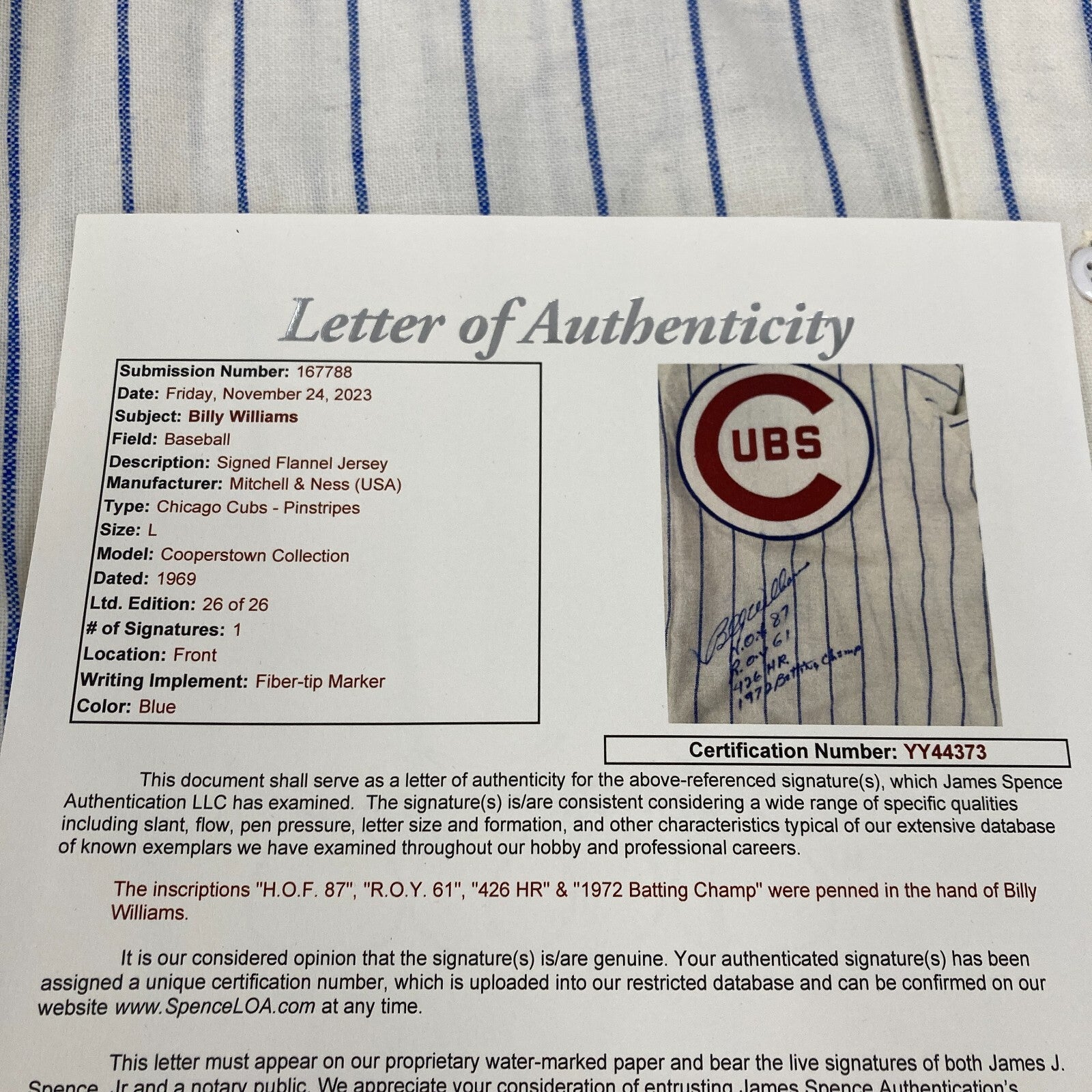 Click or scroll to zoom Tap or pinch to zoom Click or scroll to zoom Tap or pinch to zoom Click or scroll to zoom Tap or pinch to zoom Click or scroll to zoom Tap or pinch to zoom Click or scroll to zoom Tap or pinch to zoom Click or scroll to zoom Tap or pinch to zoom Click or scroll to zoom Tap or pinch to zoom Click or scroll to zoom Tap or pinch to zoom Click or scroll to zoom Tap or pinch to zoom Click or scroll to zoom Tap or pinch to zoom Click or scroll to zoom Tap or pinch to zoom Click or scroll to zoom Tap or pinch to zoom Click or scroll to zoom Tap or pinch to zoom Billy Williams Signed Inscribed STATS Chicago Cubs Jersey UDA & JSA COA $995.00 1 2 3 4 5 6 7 8 9 10+ Quantity Quantity Add to cart This item is a recurring or deferred purchase. By continuing, I agree to the cancellation policy and authorize you to charge my payment method at the prices, frequency and dates listed on this page until my order is fulfilled or I cancel, if permitted. Billy Williams Signed Inscribed STATS Chicago Cubs Authentic Mitchell & Ness Jersey. Comes with UDA Upper Deck COA and JSA COA. Does not have UDA hologram. Comes with full letter COA from JSA. Section #7